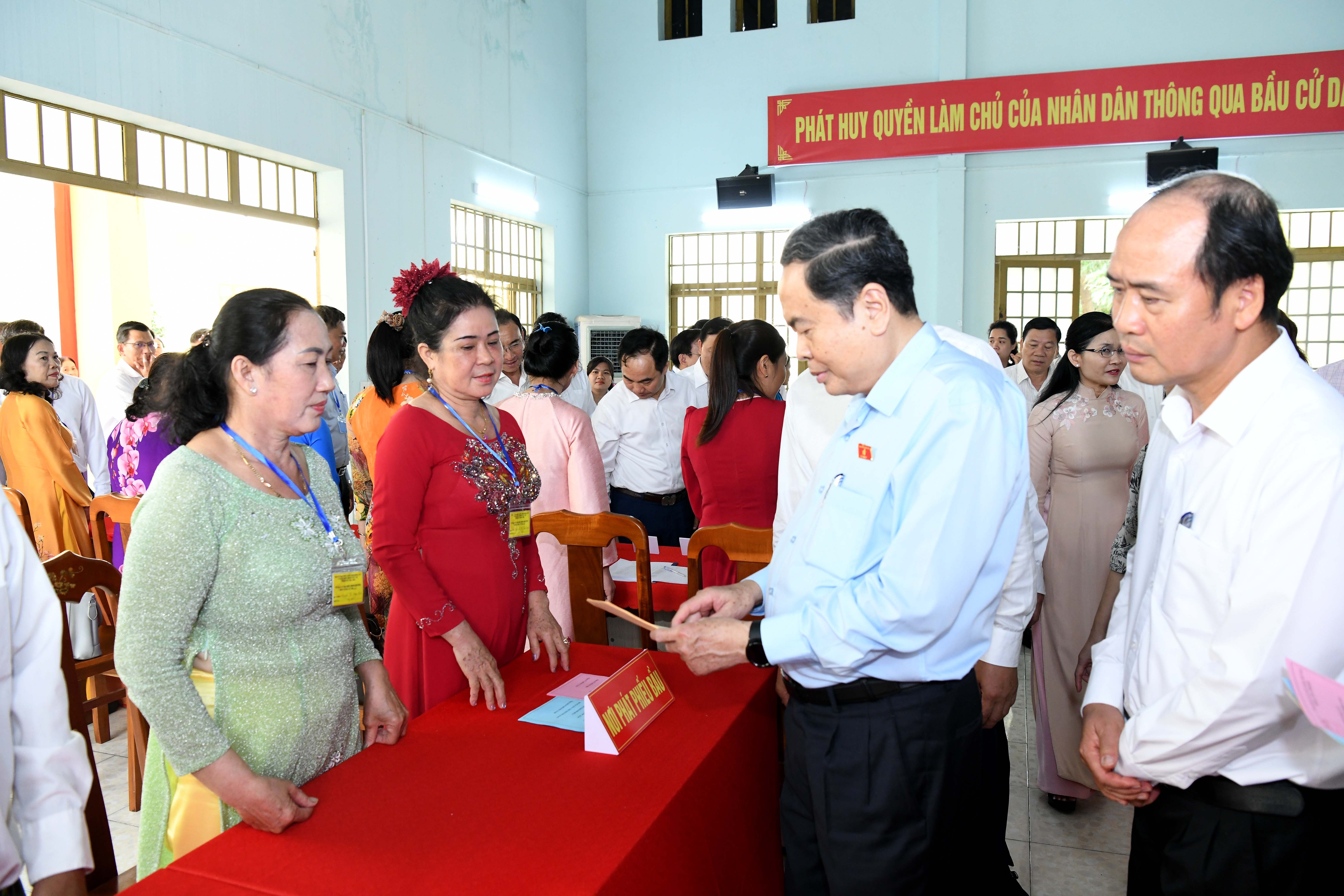 Chủ tịch Quốc hội Trần Thanh Mẫn kiểm tra công tác bầu cử tại khu vực bỏ phiếu số 17, phường Tân Triều, tỉnh Đồng Nai