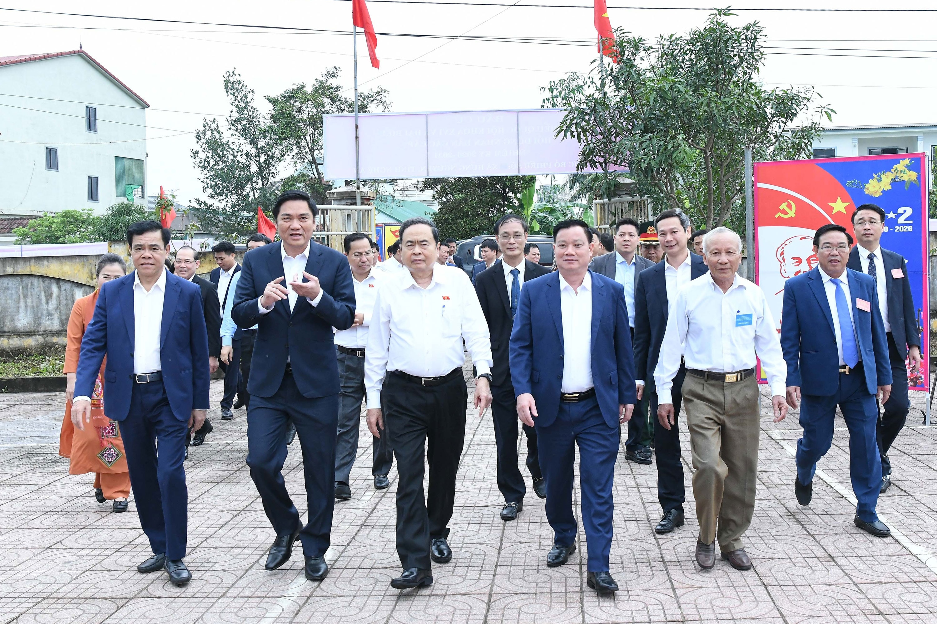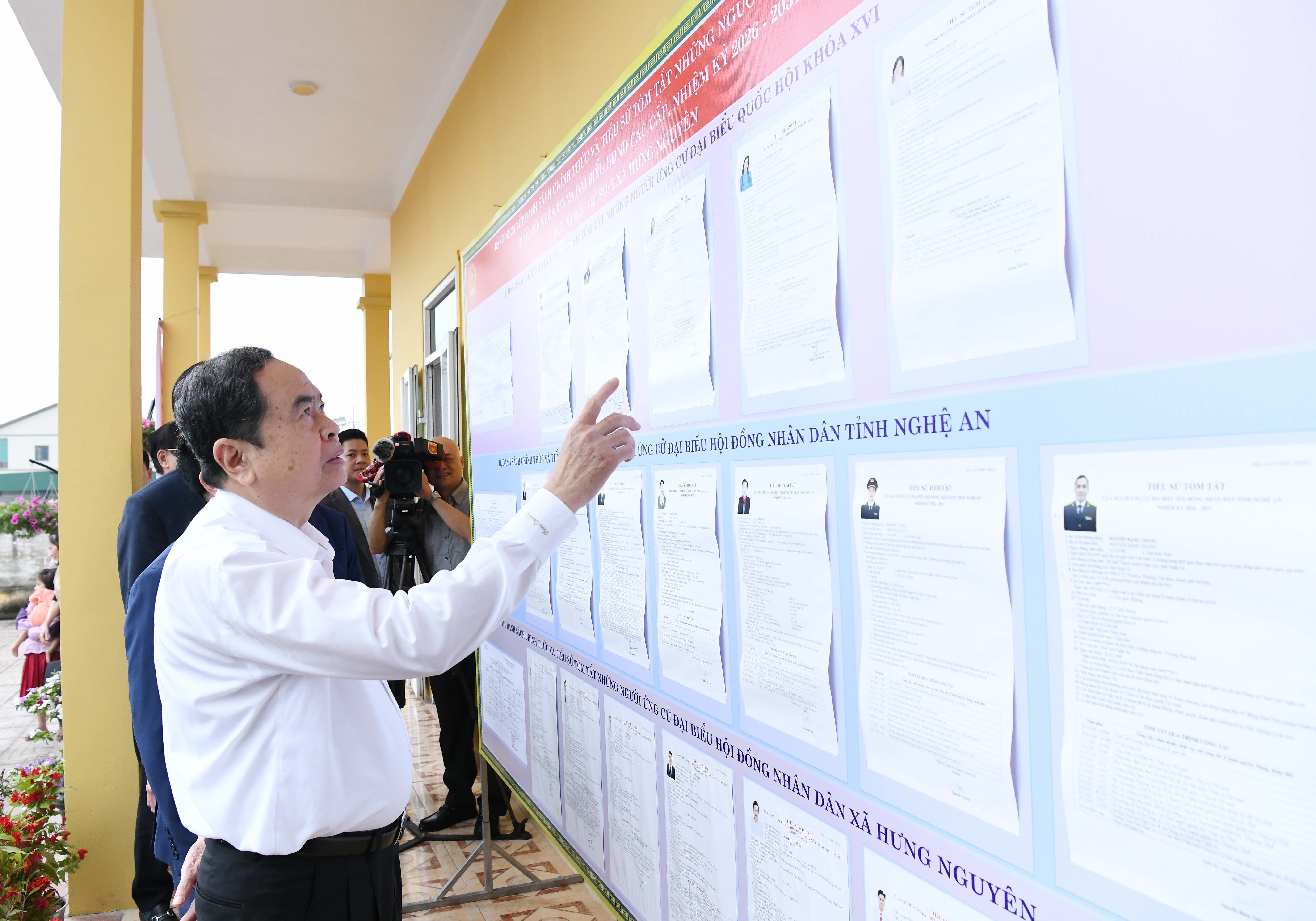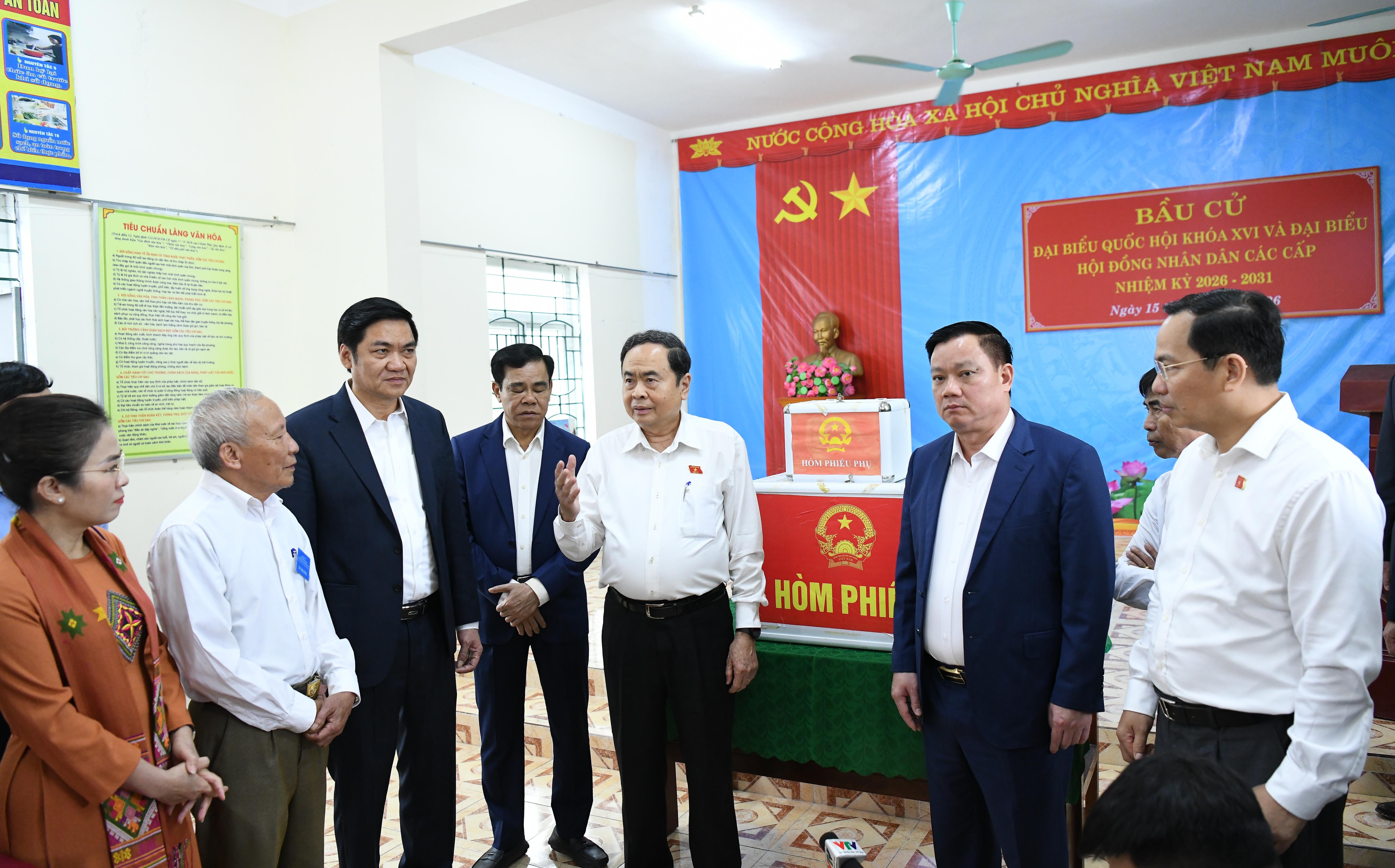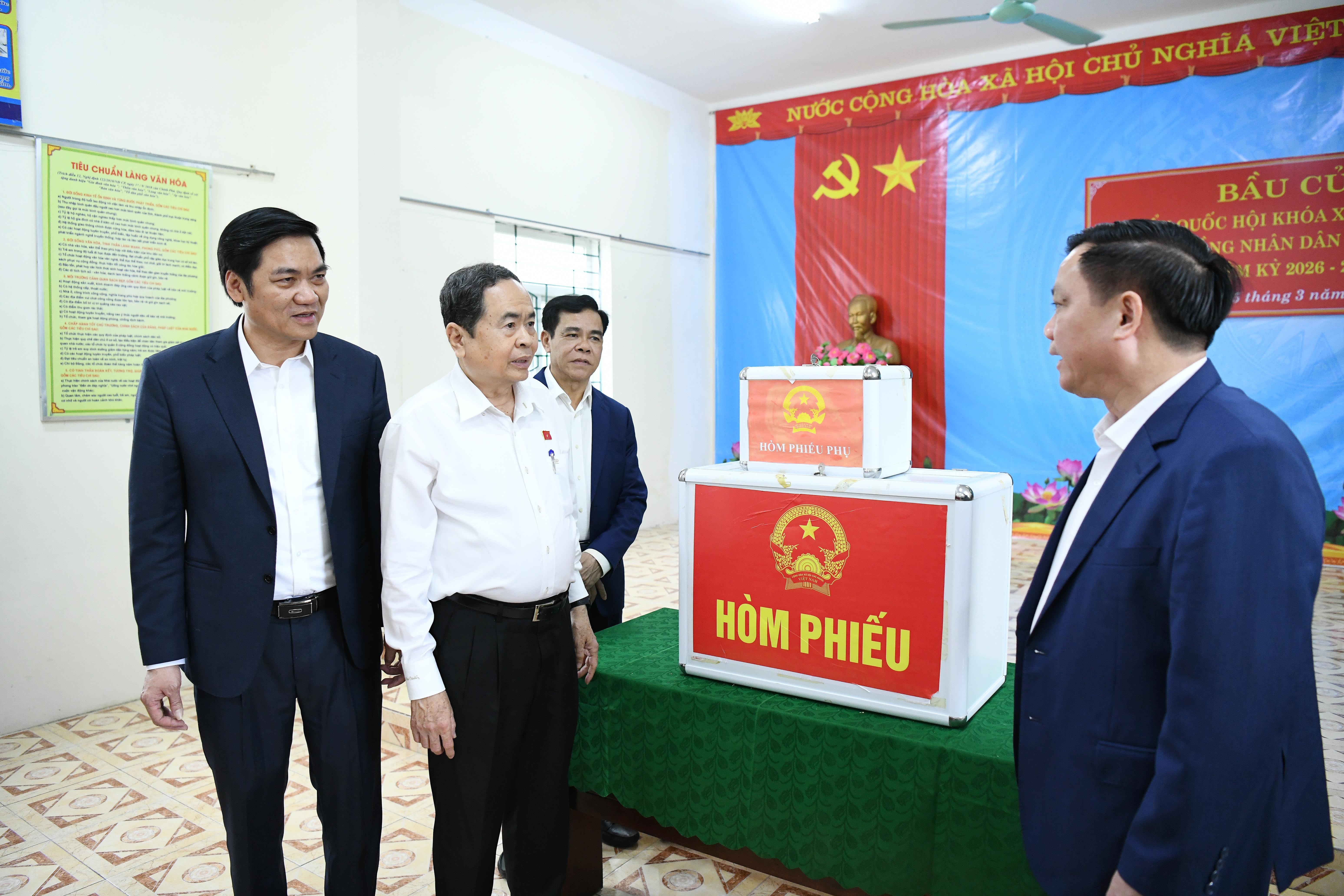 Chủ tịch Quốc hội Trần Thanh Mẫn kiểm tra công tác bầu cử tại xóm Phúc Long, xã Hưng Nguyên, tỉnh Nghệ An