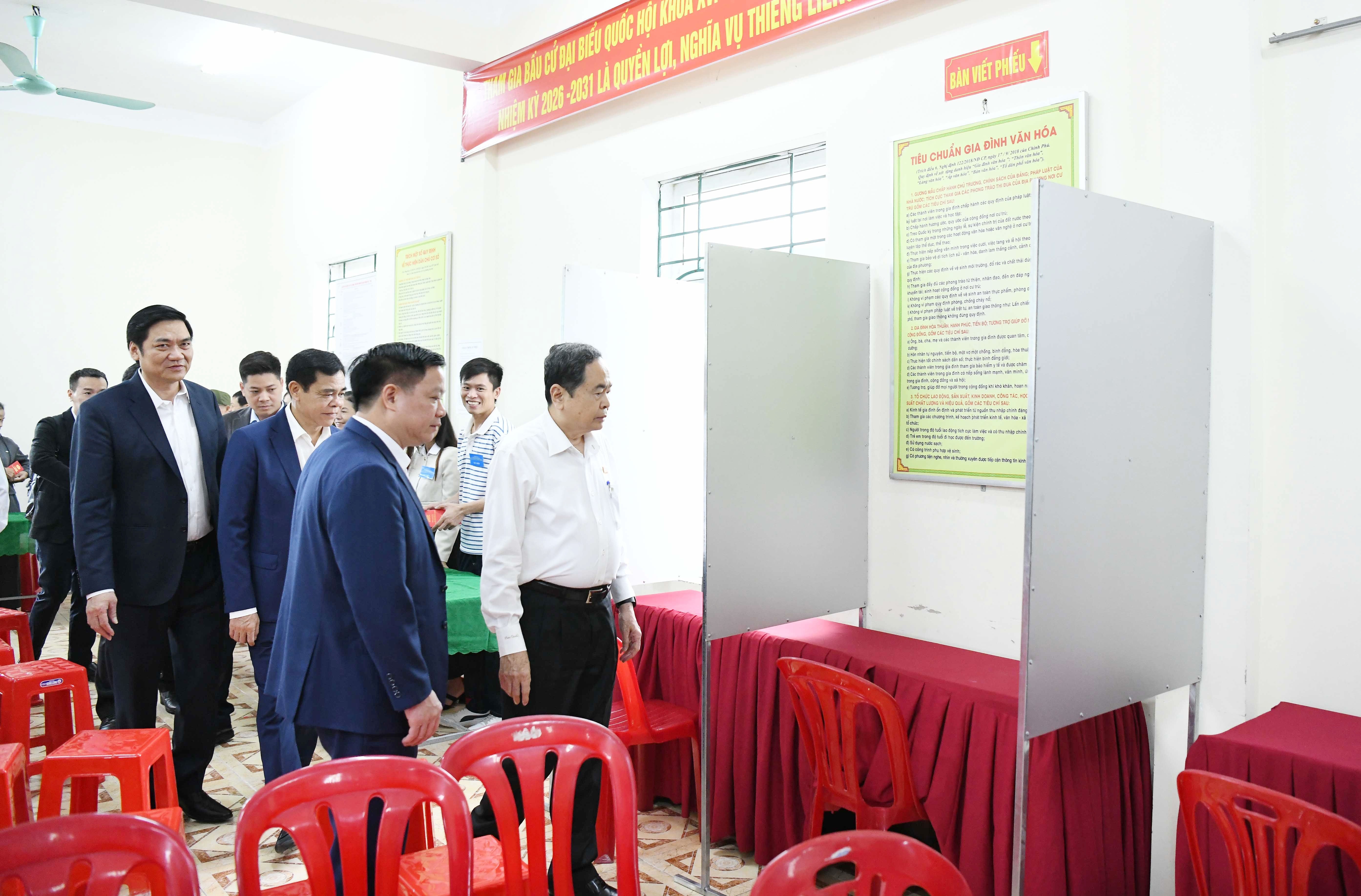 Chủ tịch Quốc hội đánh giá cao sự chủ động, nghiêm túc của cấp ủy, chính quyền địa phương và các tổ bầu cử trong việc bố trí cơ sở vật chất, phương án bảo đảm an ninh, trật tự phục vụ bầu cử.
