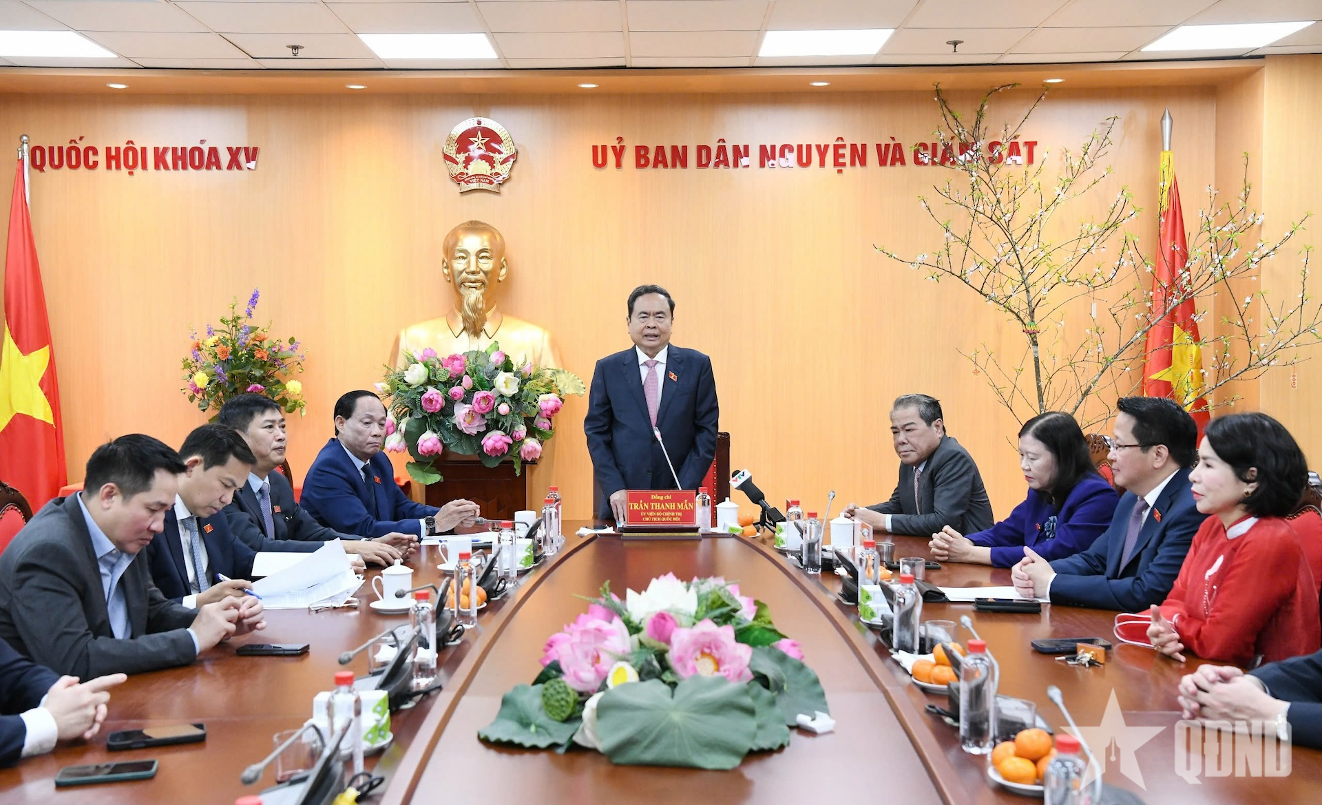 Chủ tịch Quốc hội Trần Thanh Mẫn làm việc với Ủy ban Dân nguyện và Giám sát của Quốc hội. Ảnh: LÂM HIỂN