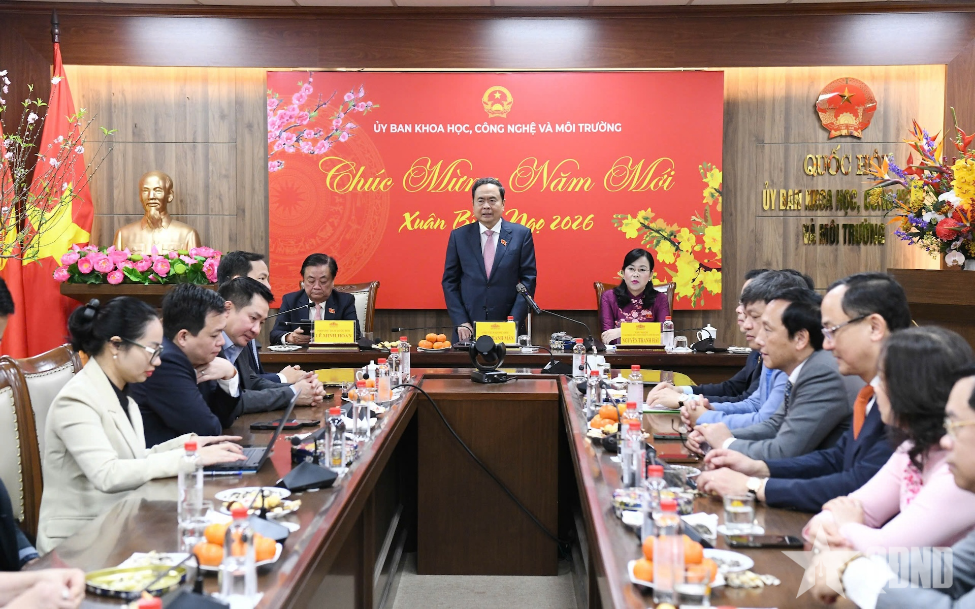 Chủ tịch Quốc hội Trần Thanh Mẫn cùng các đại biểu và Ủy ban Khoa học, Công nghệ và Môi trường. Ảnh: LÂM HIỂN