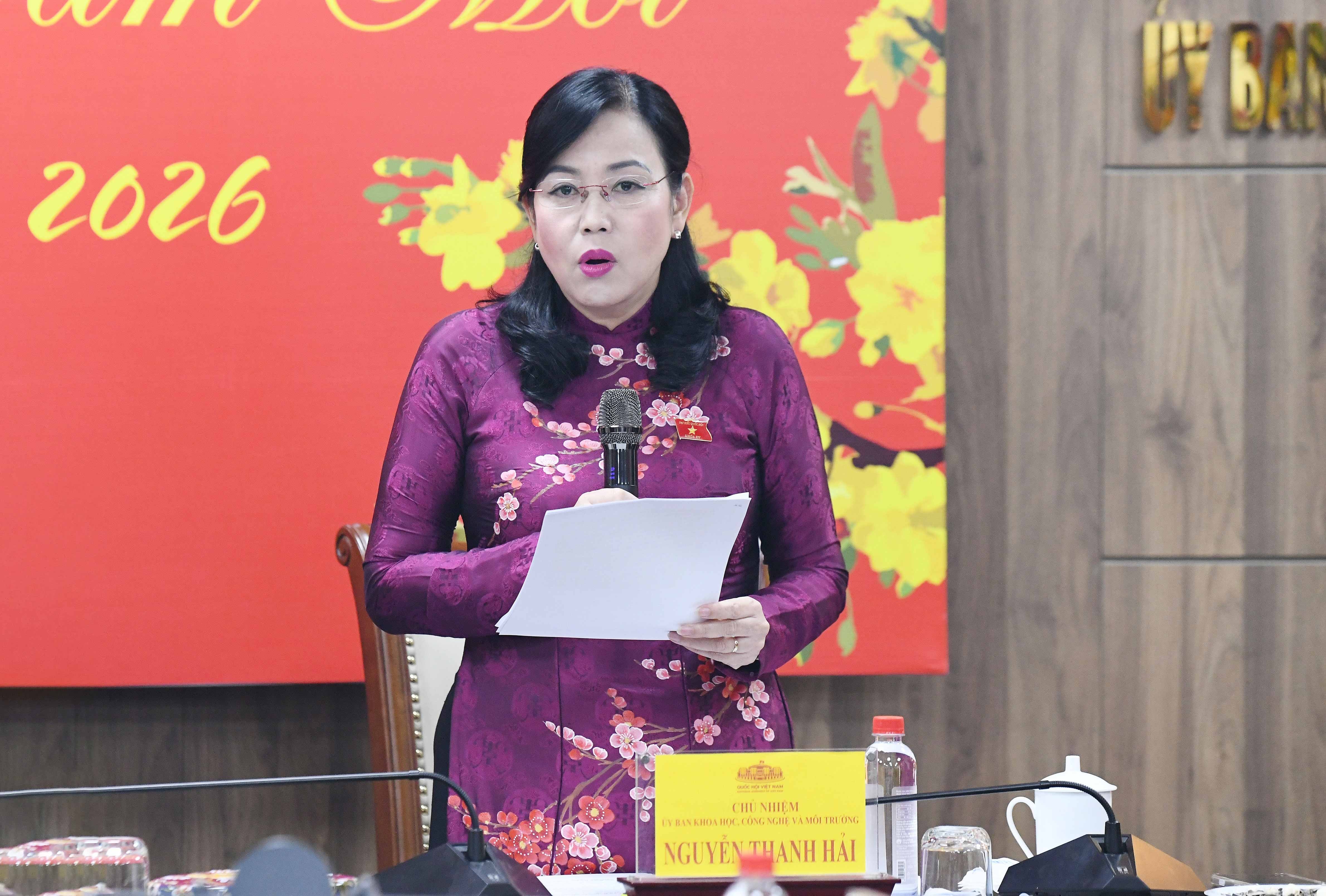 Trước đó, báo cáo kết quả công tác năm 2025, Chủ nhiệm Ủy ban Khoa học, Công nghệ và Môi trường Nguyễn Thanh Hải nêu rõ: khối lượng công việc của Ủy ban tăng rất lớn so với các năm trước, từ nhiệm vụ lập pháp, giám sát, quyết định các vấn đề quan trọng của đất nước đến công tác xây dựng Đảng. Tuy nhiên, dưới sự lãnh đạo, chỉ đạo sát sao của Lãnh đạo Quốc hội, Ủy ban Thường vụ Quốc hội và Đảng ủy Quốc hội, Ủy ban đã hoàn thành tốt, toàn diện các mục tiêu, nhiệm vụ đã đặt ra.