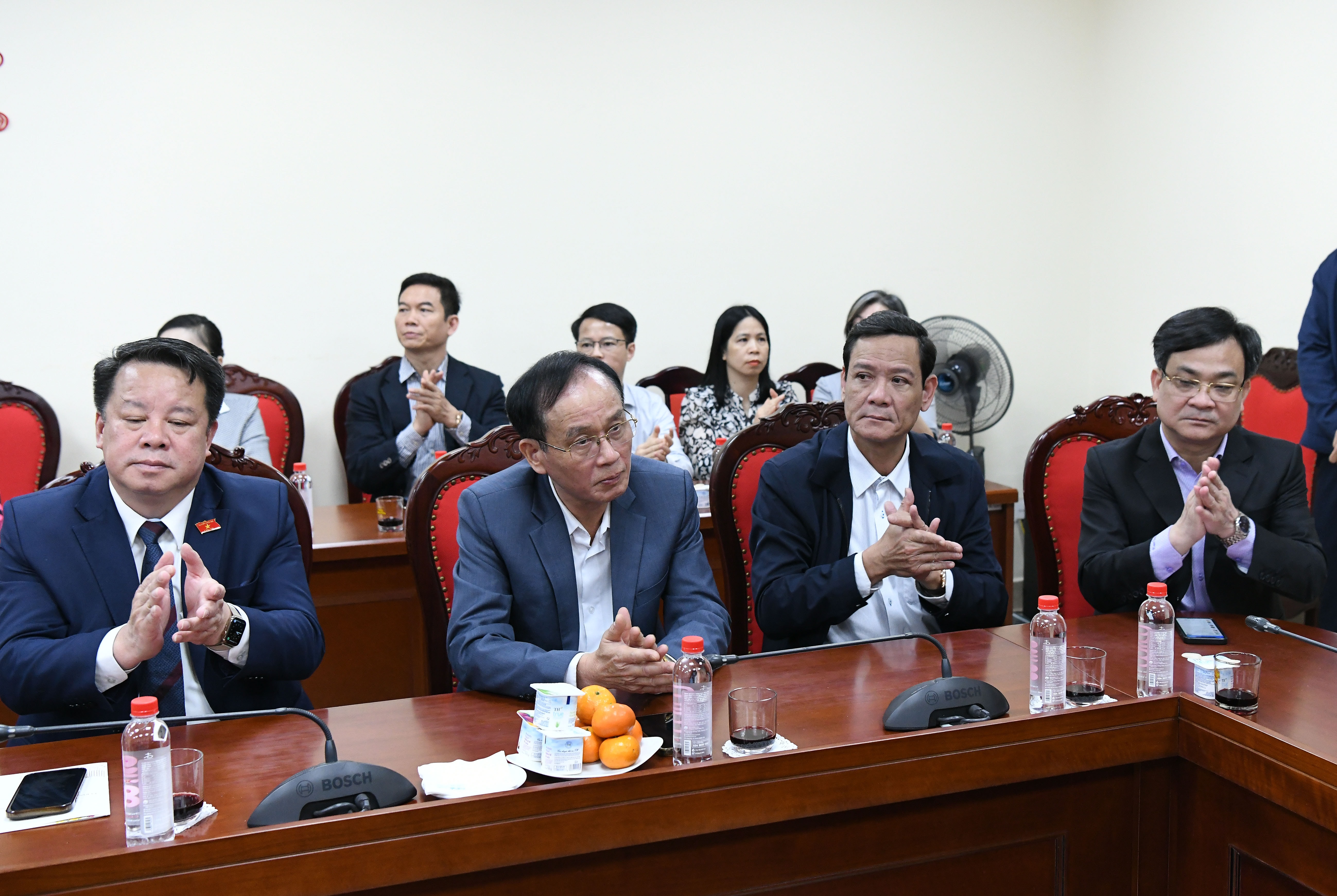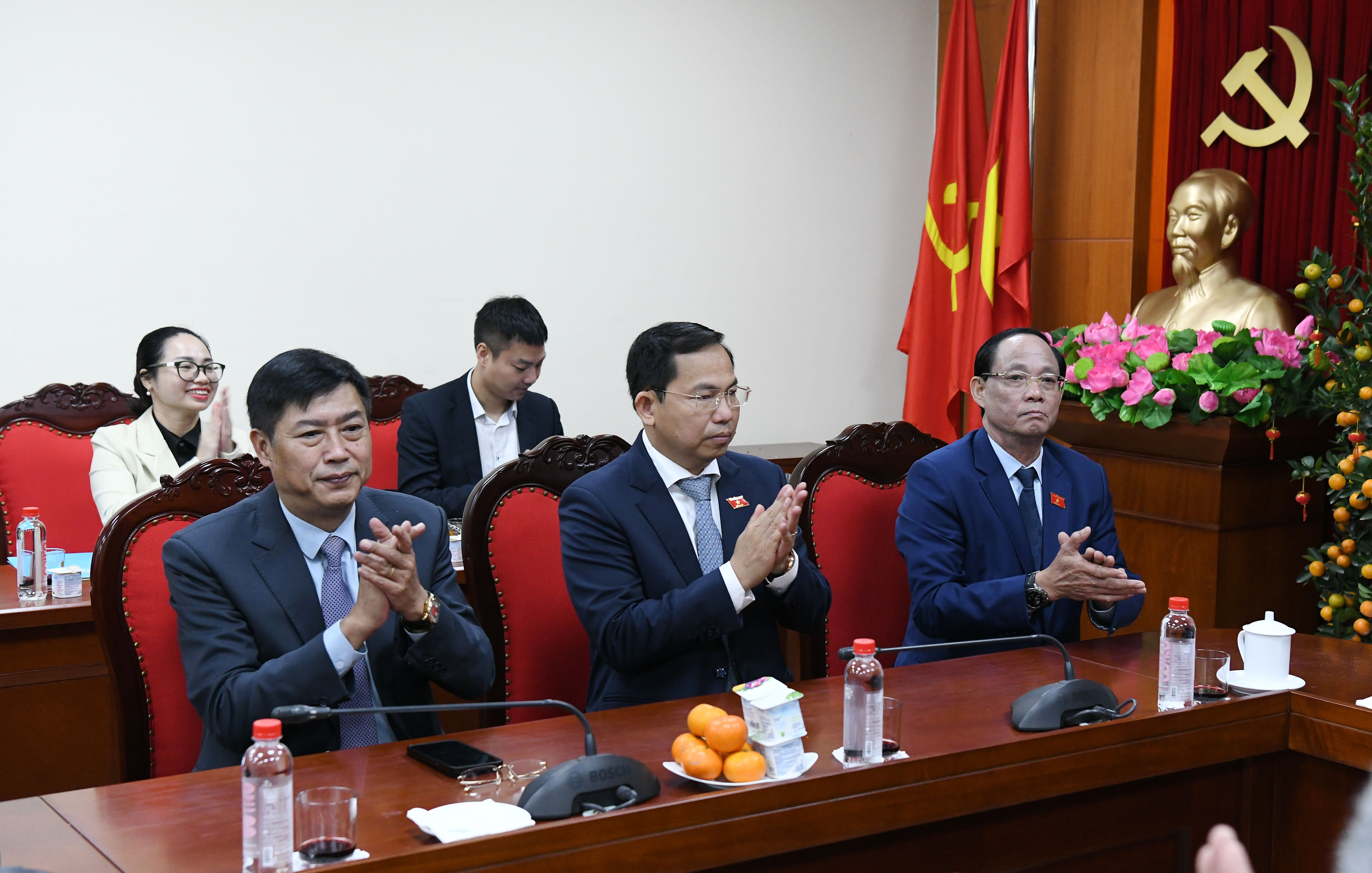 Phó Chủ tịch Quốc hội, Thượng tướng Trần Quang Phương; Tổng Thư ký Quốc hội, Chủ nhiệm Văn phòng Quốc hội Lê Quang Mạnh; Chủ nhiệm Ủy ban Công tác đại biểu Nguyễn Hữu Đông tham dự cuộc làm việc