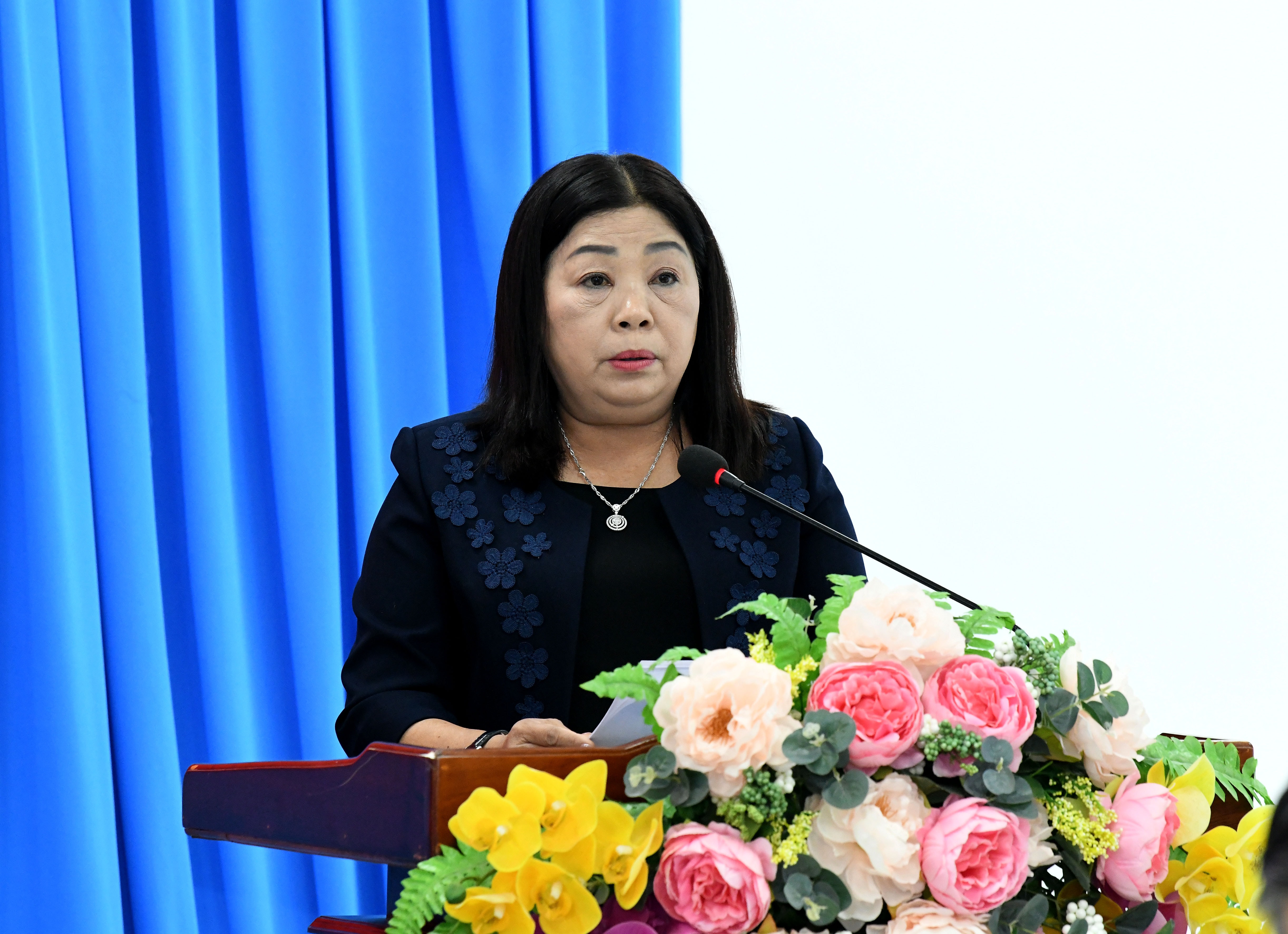 Phó Chủ tịch Hội đồng Dân tộc Trần Thị Hoa Ry phát biểu
