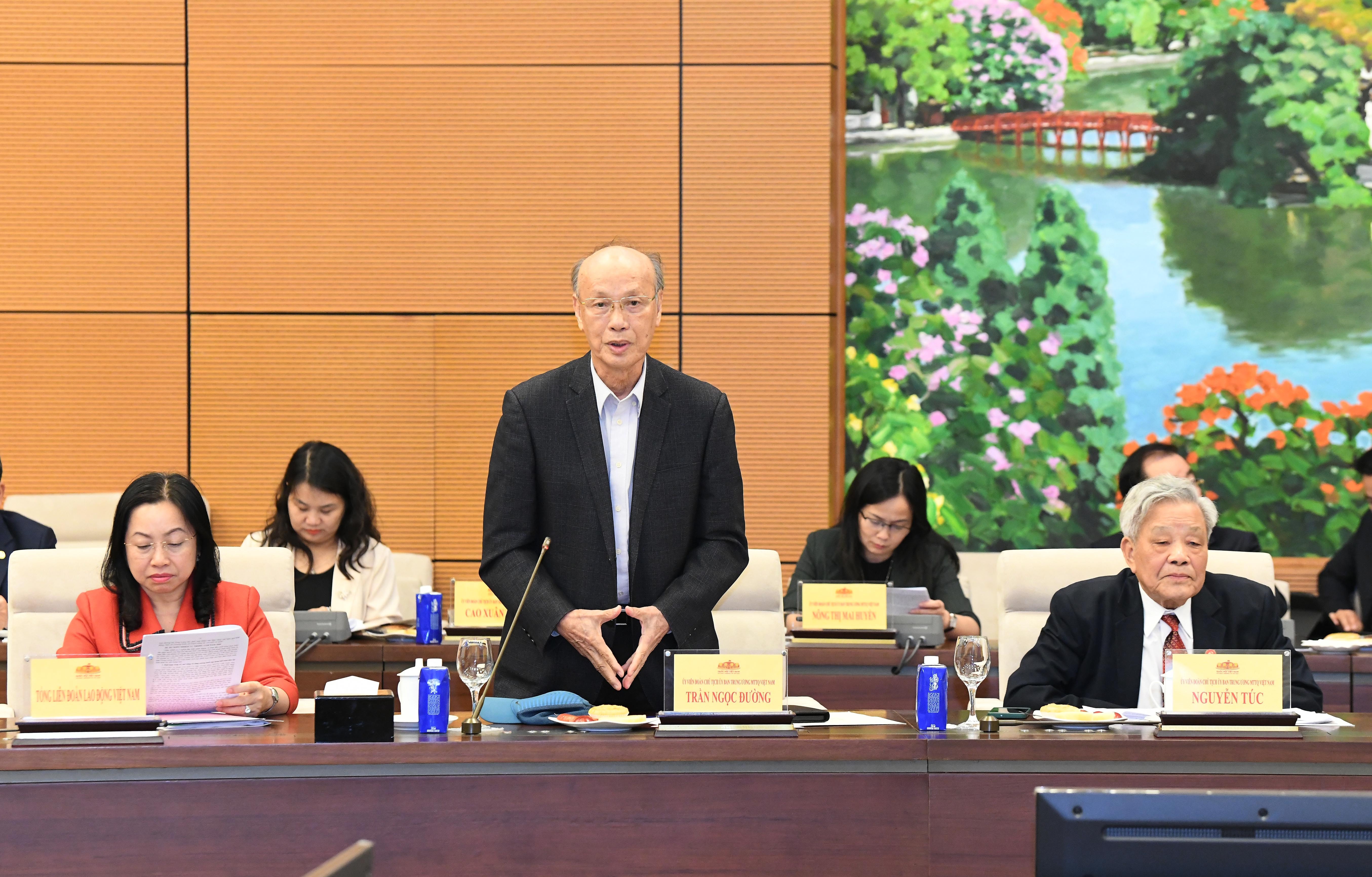 Chủ nhiệm Hội đồng tư vấn Dân chủ - Pháp luật, Ủy ban Trung ương MTTQ Việt Nam Trần Ngọc Đường phát biểu tại Hội nghị