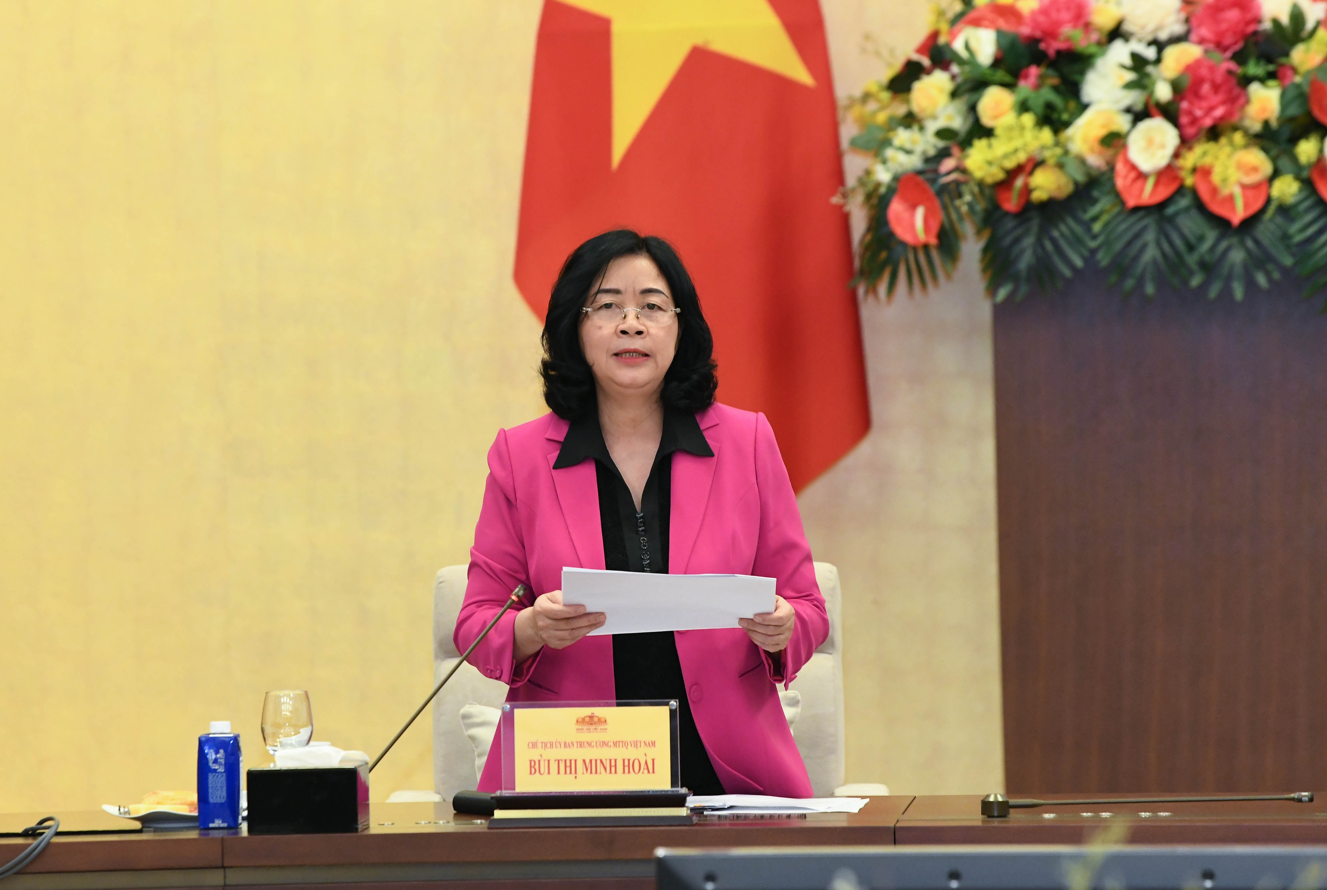 Chủ tịch Ủy ban Trung ương MTTQ Việt Nam Bùi Thị Minh Hoài phát biểu tại Hội nghị