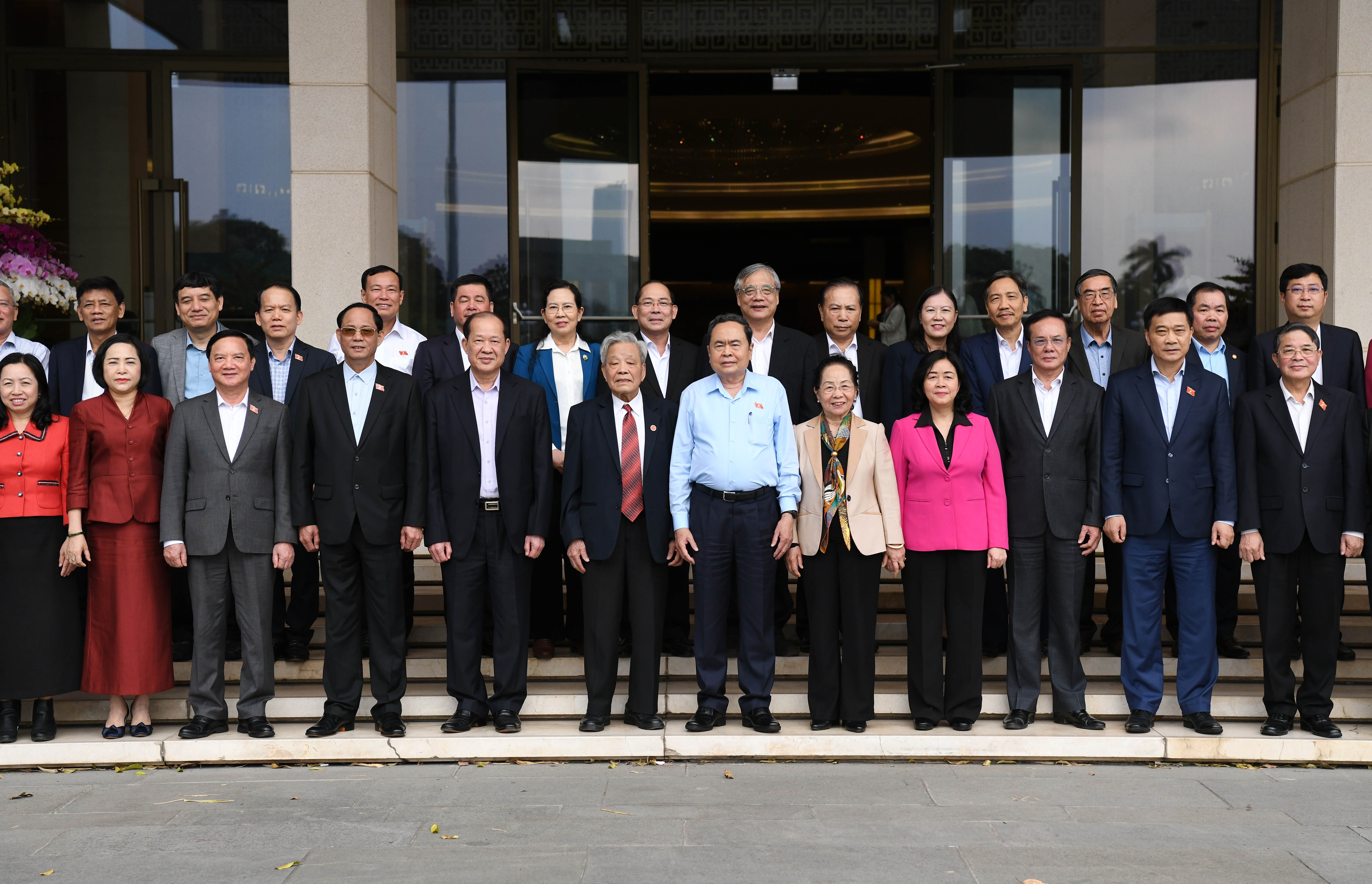 Chủ tịch Quốc hội Trần Thanh Mẫn, Chủ tịch Ủy ban Trung ương MTTQ Việt Nam Bùi Thị Minh Hoài với các đại biểu dự Hội nghị