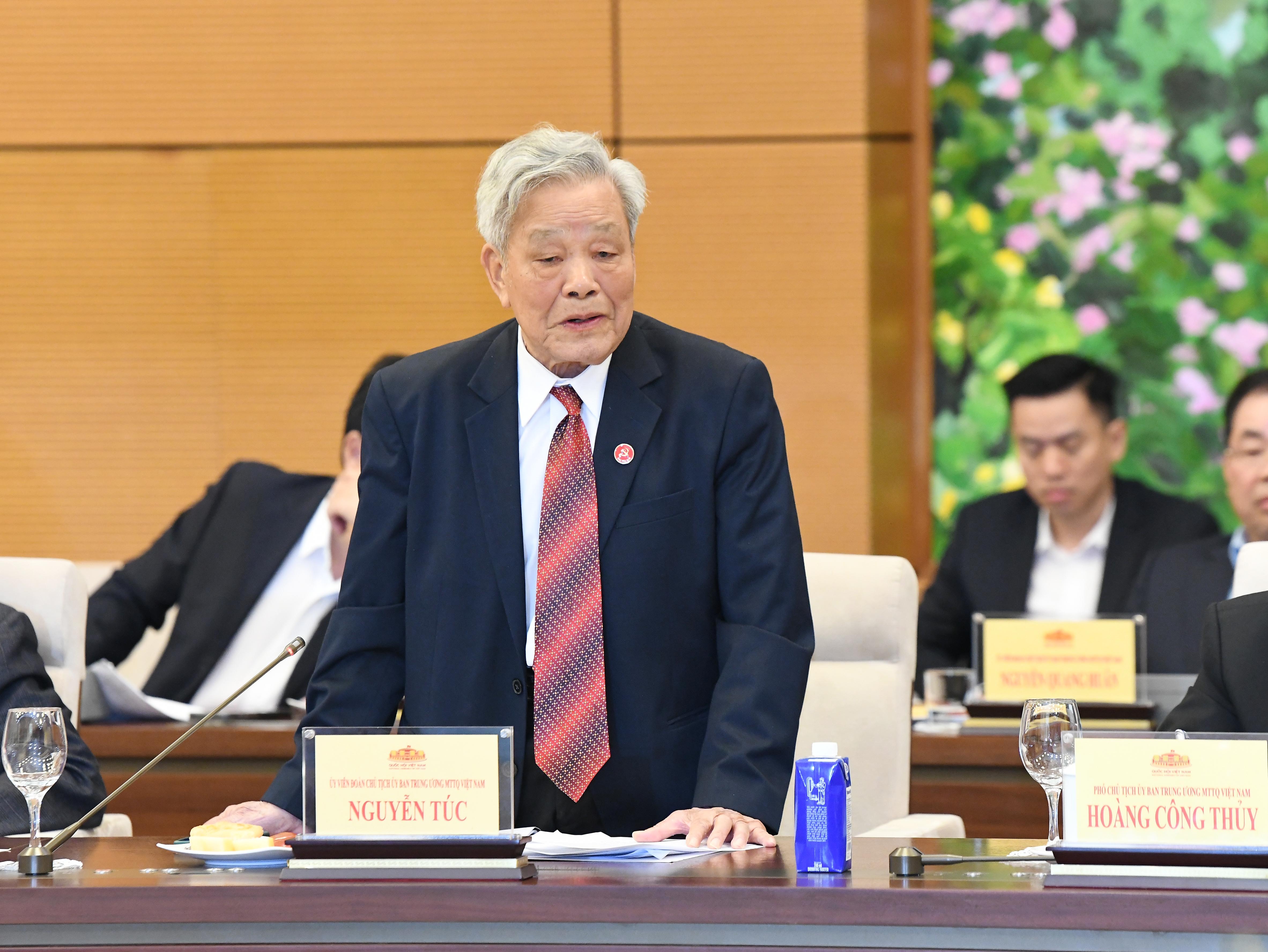 Ủy viên Đoàn Chủ tịch Ủy ban Trung ương Mặt trận Tổ quốc Việt Nam Nguyễn Túc phát biểu tại Hội nghị