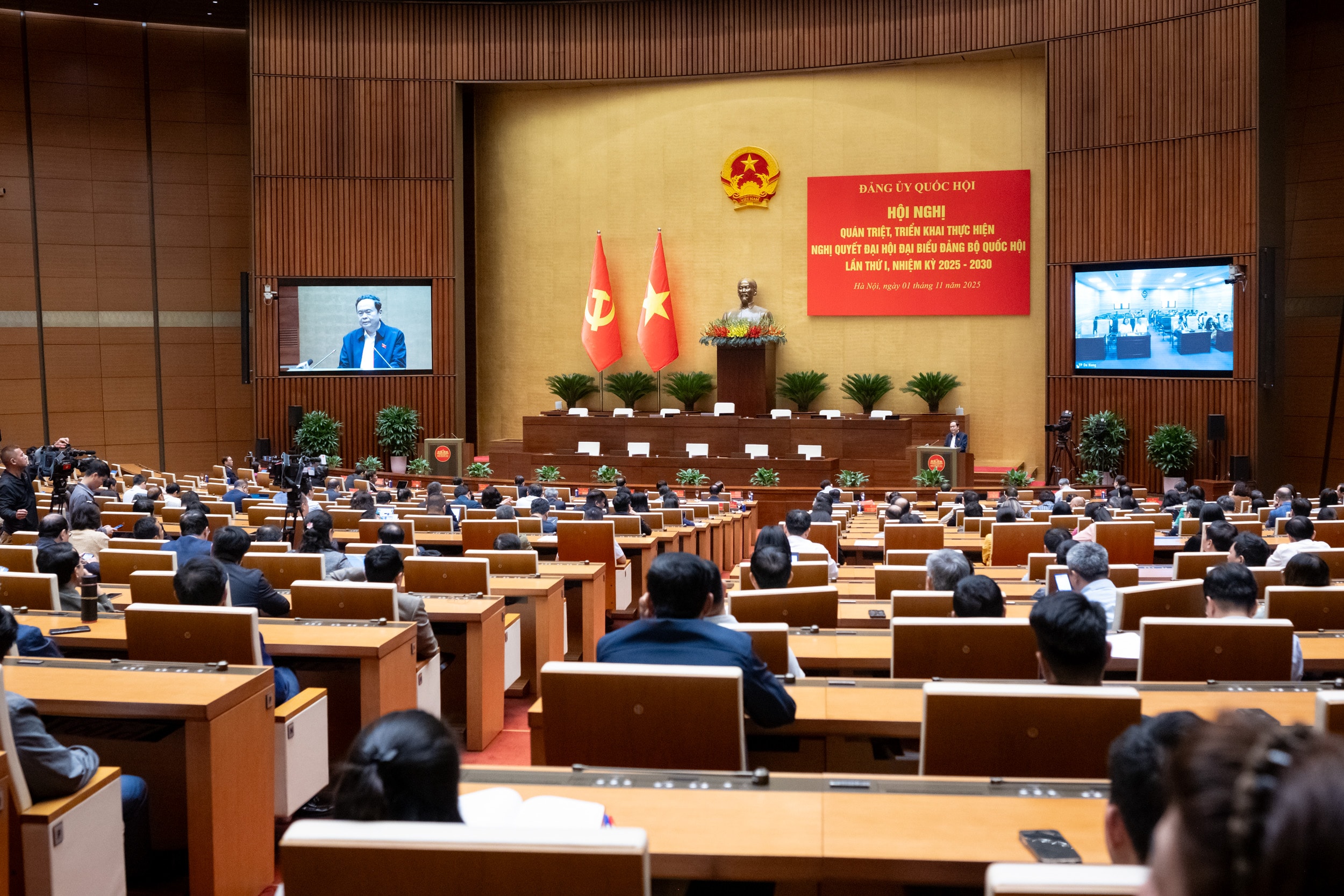 Trước đó, quán triệt Nghị quyết Đại hội đại biểu Đảng bộ Quốc hội lần thứ I và Chương trình hành động thực hiện Nghị quyết, Phó Bí thư chuyên trách Đảng ủy Quốc hội Vũ Hải Hà nêu rõ, trong nhiệm kỳ 2025 - 2030, Đảng bộ Quốc hộitiếp tục đổi mới tư duy, bảo đảm sự lãnh đạo toàn diện, trực tiếp của Đảng bộ Quốc hội trong công tác lập hiến, lập pháp, giám sát, quyết định các vấn đề quan trọng của đất nước, hoạt động đối ngoại của Quốc hội, xác định hoàn thiện thể chế phát triển làm khâu đột phá, khuyến khích sáng tạo, giải phóng toàn bộ sức sản xuất, khơi thông mọi nguồn lực cho phát triển; bảo đảm và nâng cao tính Nhân dân, tính Đảng trong hoạt động của Quốc hội.