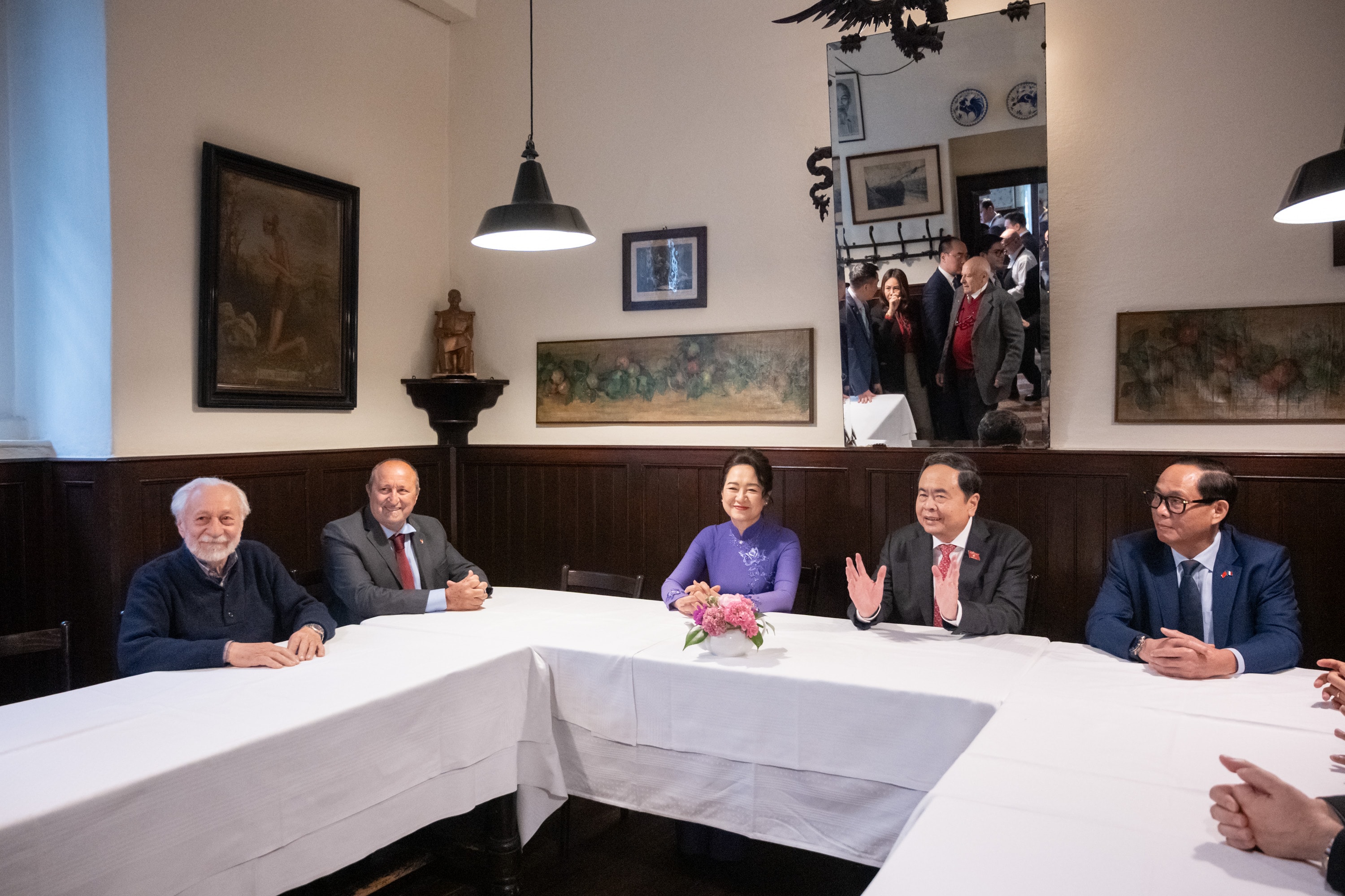 Chủ tịch Quốc hội Trần Thanh Mẫn trò chuyện cùng những người bạn Italia trong "Không gian Hồ Chí Minh"