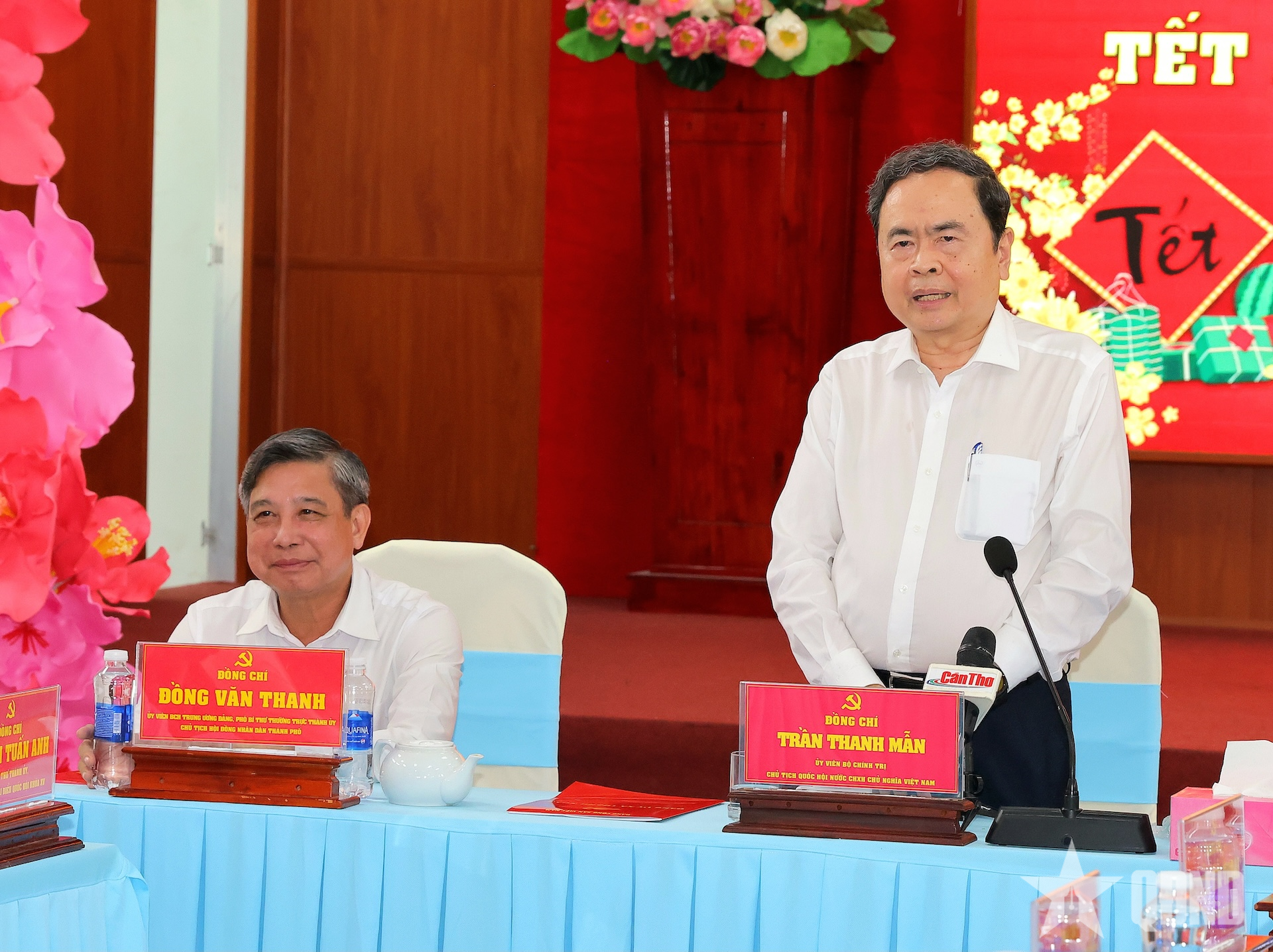 Thay mặt lãnh đạo Đảng và Nhà nước, Chủ tịch Quốc hội Trần Thanh Mẫn trân trọng gửi lời thăm hỏi và chúc mừng năm mới tốt đẹp nhất tới lãnh đạo thành phố, các gia đình chính sách, hộ nghèo, hộ cận nghèo xã Thạnh Xuân.