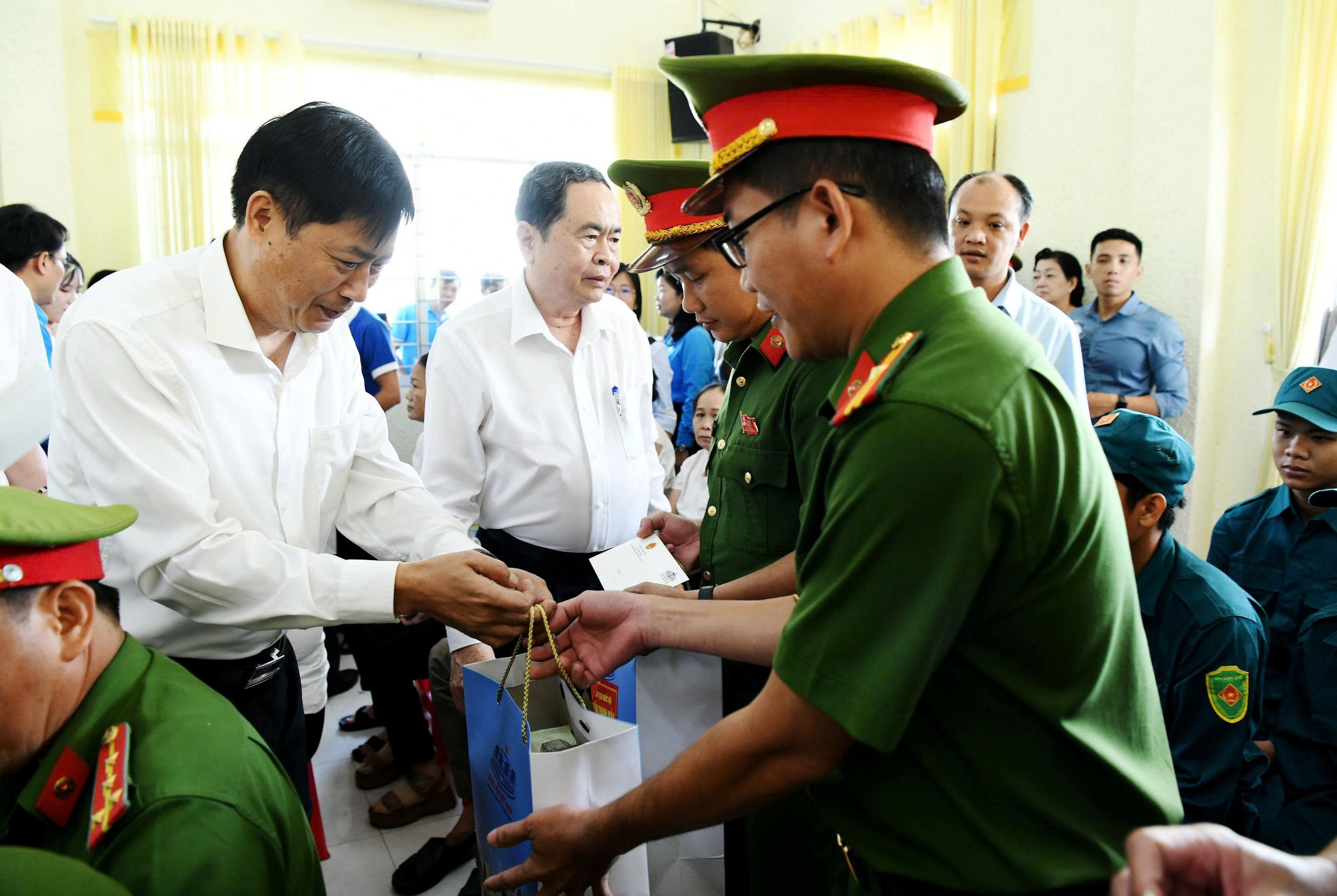 Chủ nhiệm Ủy ban Công tác đại biểu Nguyễn Hữu Đông quà tặng cán bộ chiến sĩ lực lượng vũ trang trên địa bàn