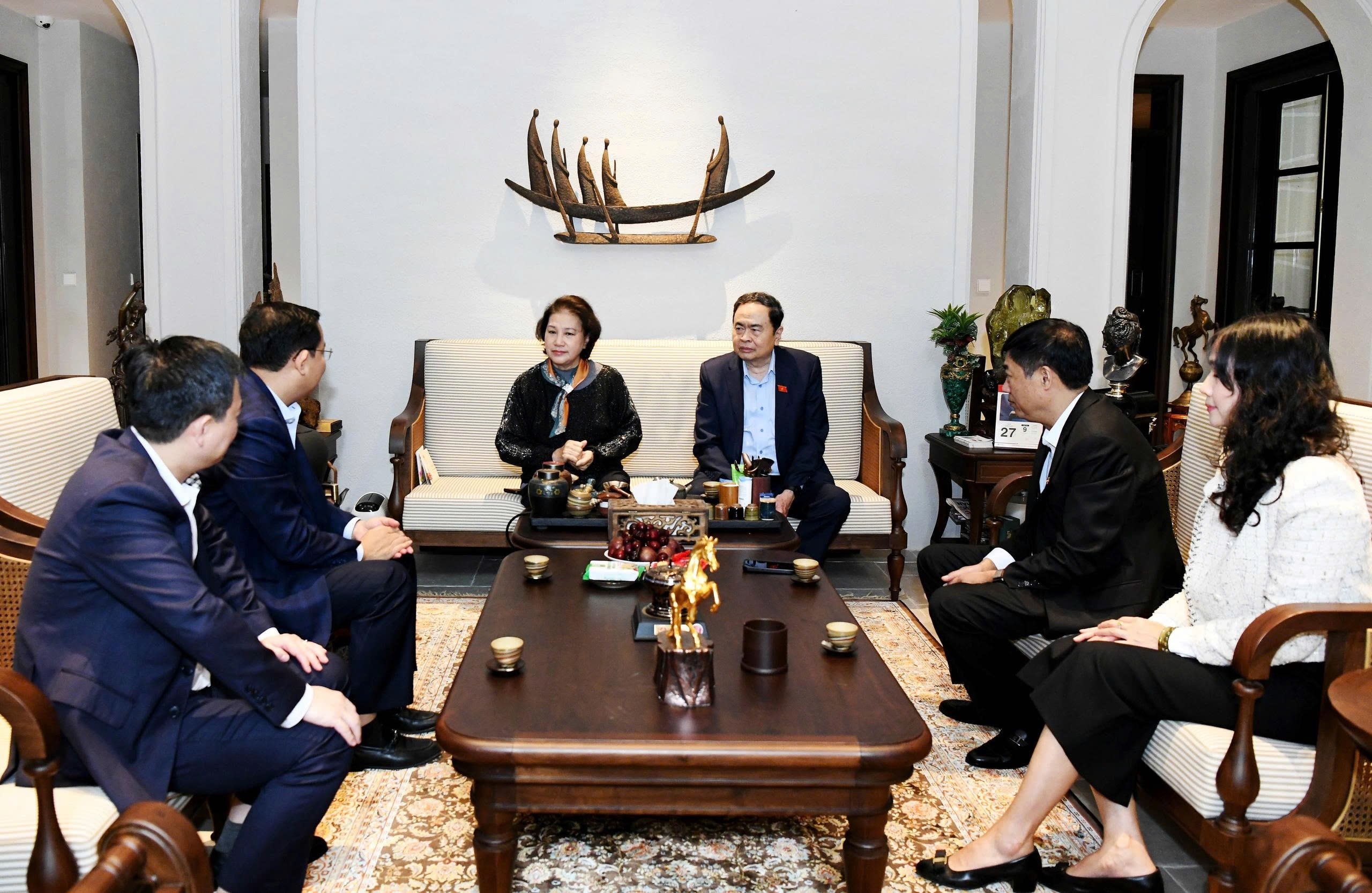 Chủ tịch Quốc hội mong nguyên Chủ tịch Quốc hội Nguyễn Thị Kim Ngân tiếp tục quan tâm, theo dõi và đóng góp kinh nghiệm, trí tuệ, góp phần xây dựng Quốc hội ngày càng vững mạnh, hiệu lực, hiệu quả.