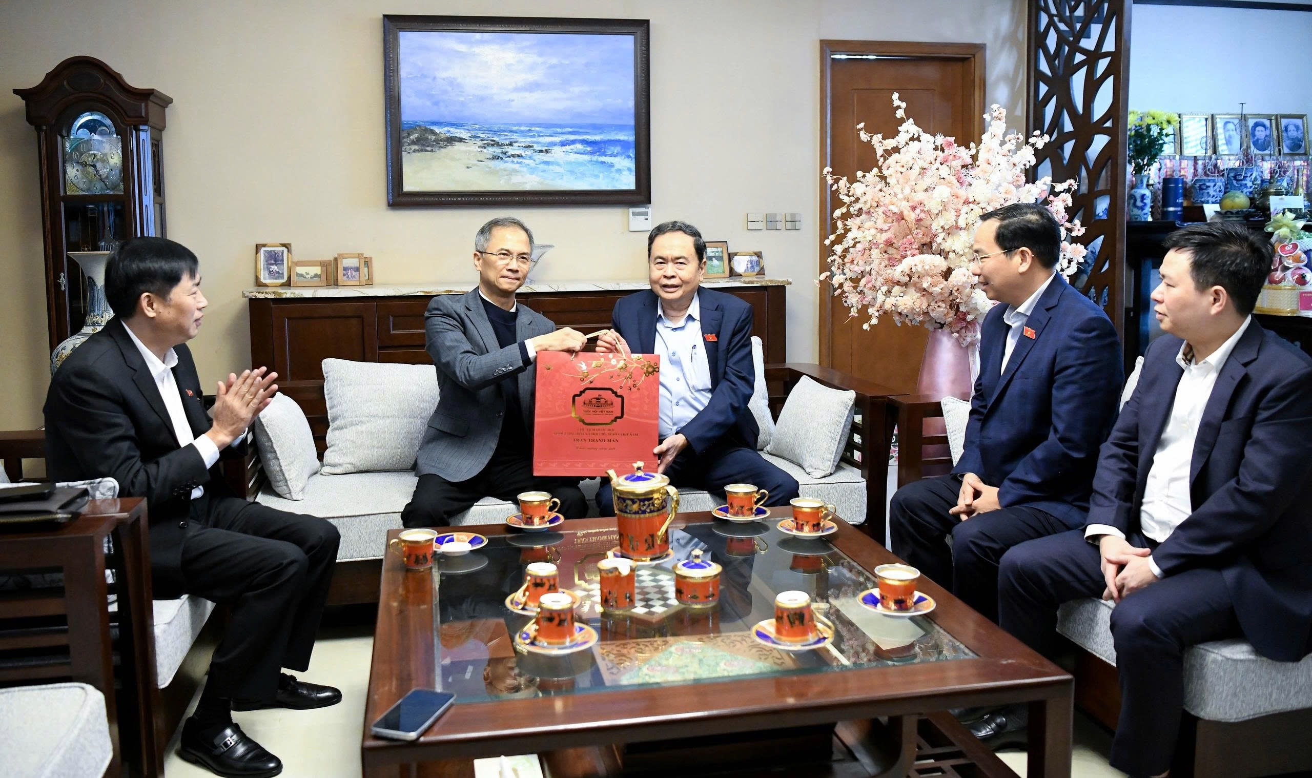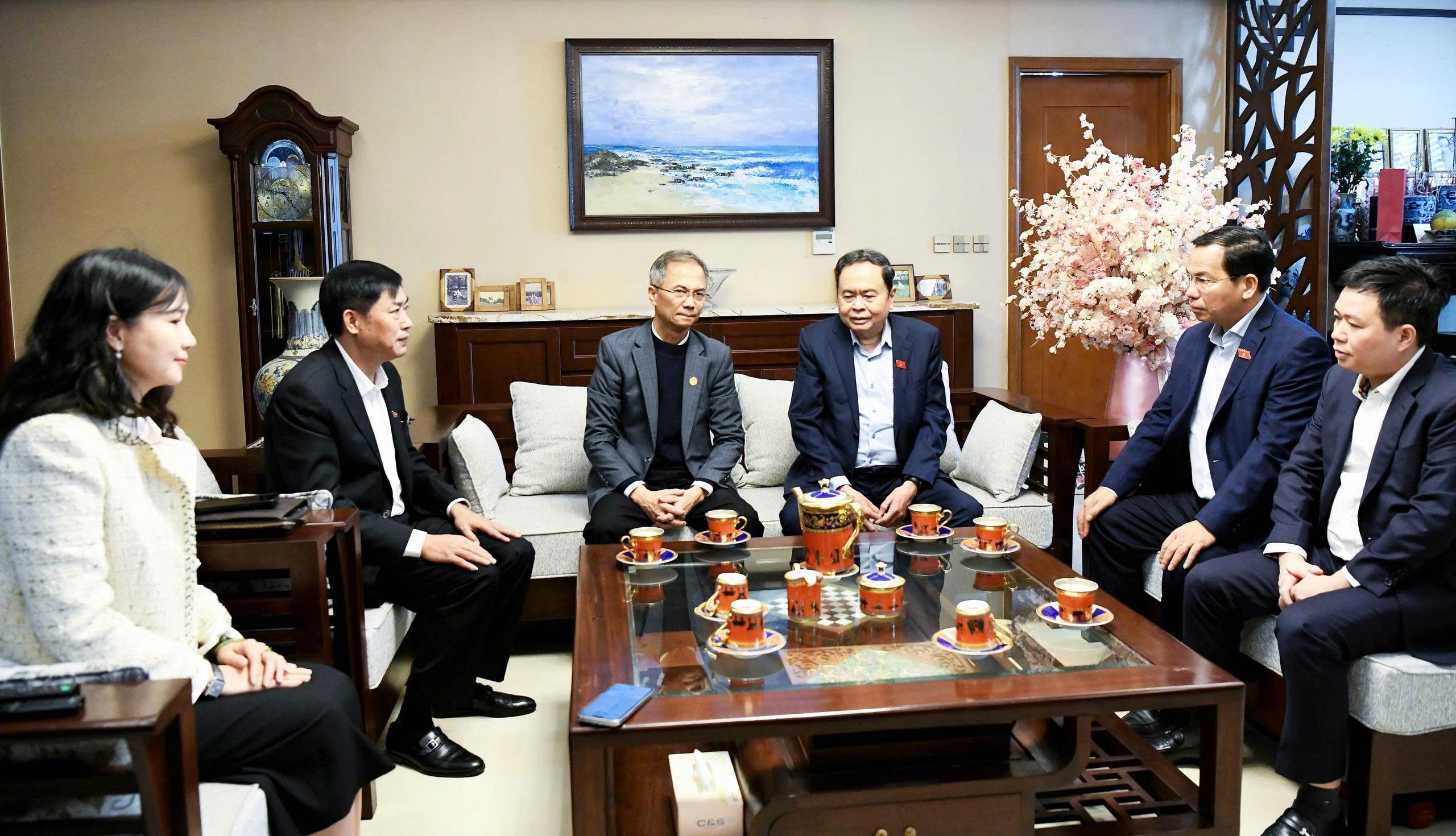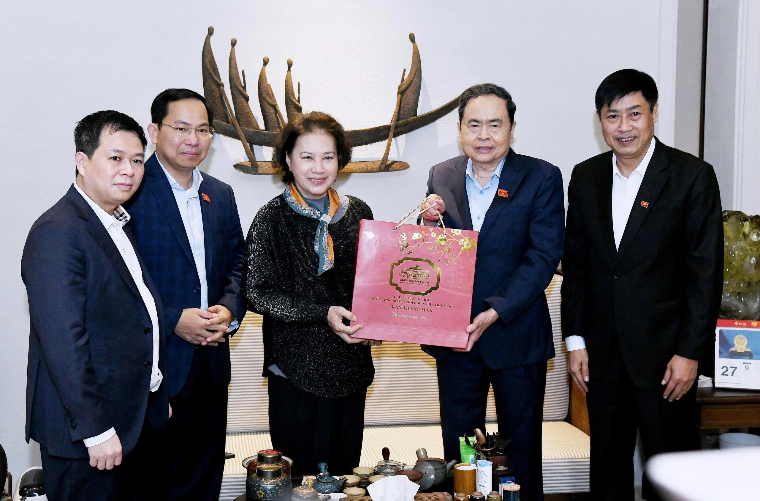 + Sáng cùng ngày, Chủ tịch Quốc hội Trần Thanh Mẫn đã đến thăm và chúc Tết nguyên Chủ tịch Quốc hội Nguyễn Thị Kim Ngân.