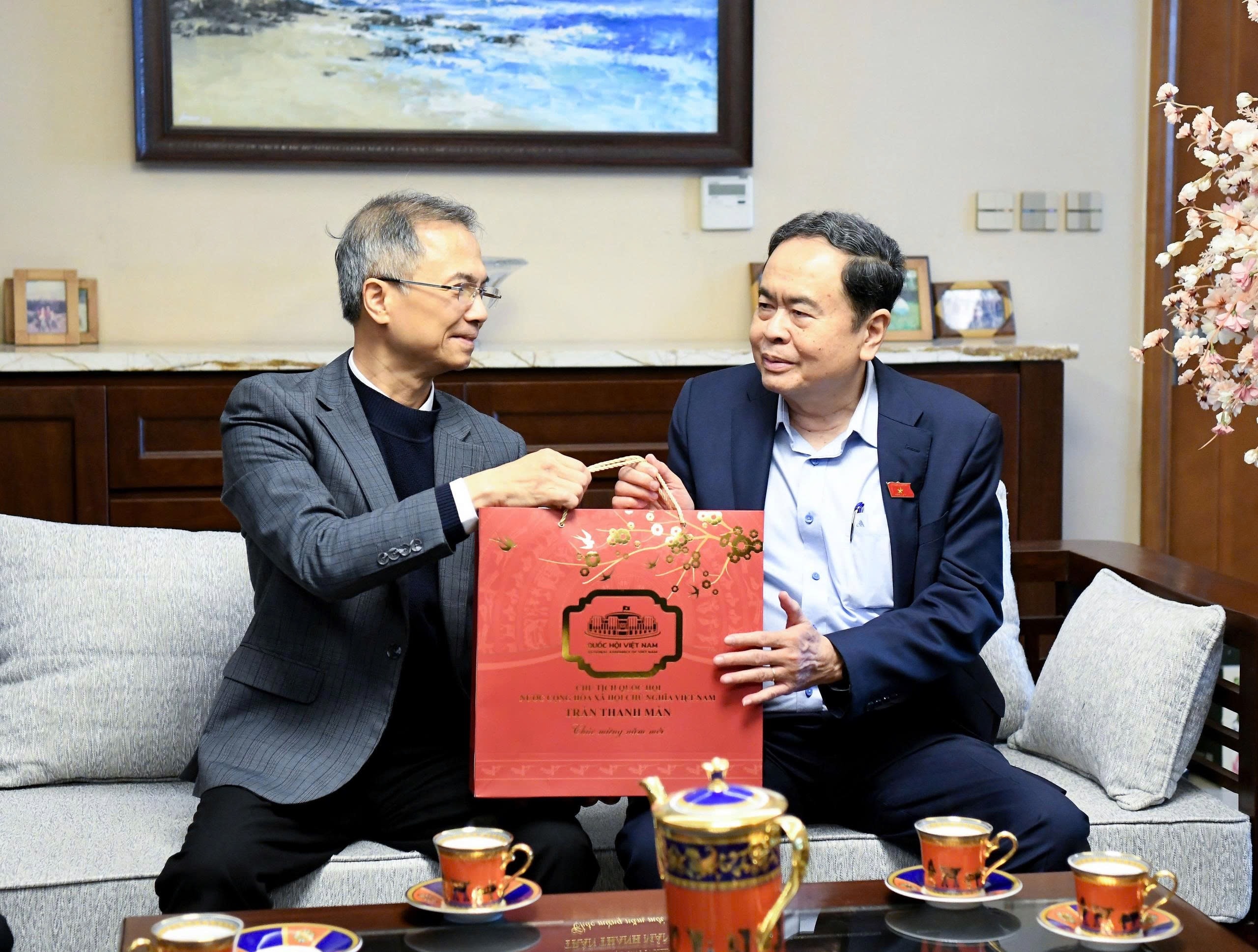 Thay mặt Ủy ban Thường vụ Quốc hội, Chủ tịch Quốc hội Trần Thanh Mẫn trân trọng cảm ơn nguyên Tổng Bí thư Nông Đức Mạnh đã luôn quan tâm, theo dõi và đóng góp nhiều ý kiến tâm huyết, sâu sắc cho hoạt động của Quốc hội; chúc nguyên Tổng Bí thư và gia đình đón năm mới mạnh khỏe, hạnh phúc.