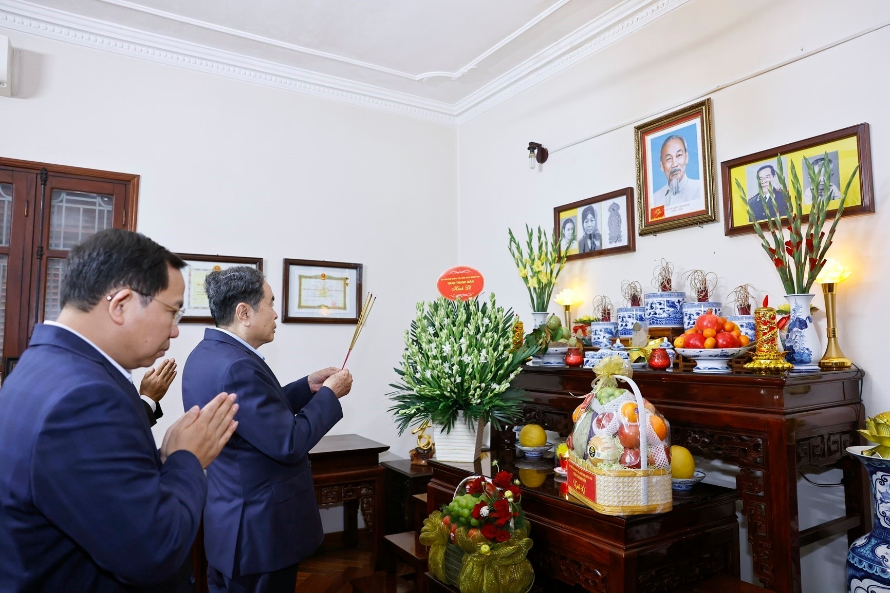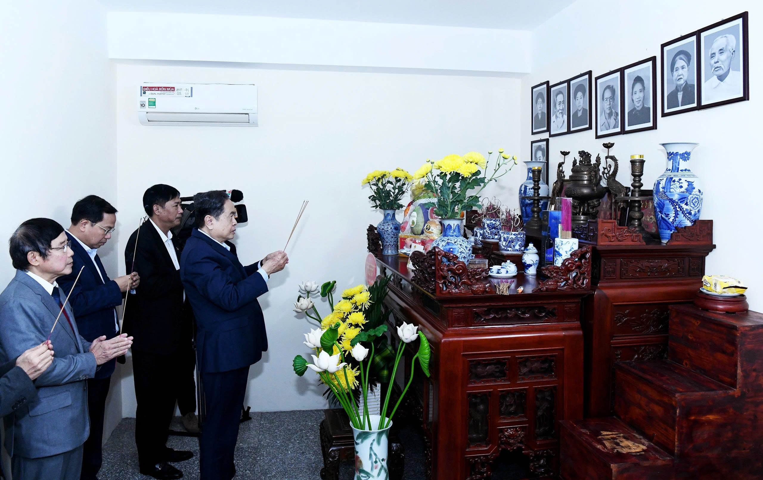 + Tiếp đó, Chủ tịch Quốc hội Trần Thanh Mẫn đã tới thăm gia đình và thắp hương tưởng nhớ, tri ân những đóng góp to lớn của Cố Tổng Bí thư Trường Chinh đối với sự nghiệp cách mạng của Đảng, của dân tộc.