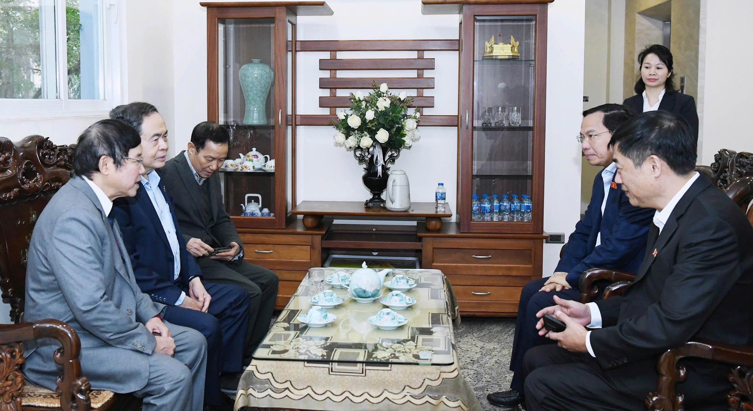 + Sáng cùng ngày, Chủ tịch Quốc hội Trần Thanh Mẫn đã đến thăm và chúc Tết nguyên Tổng Bí thư Nông Đức Mạnh.