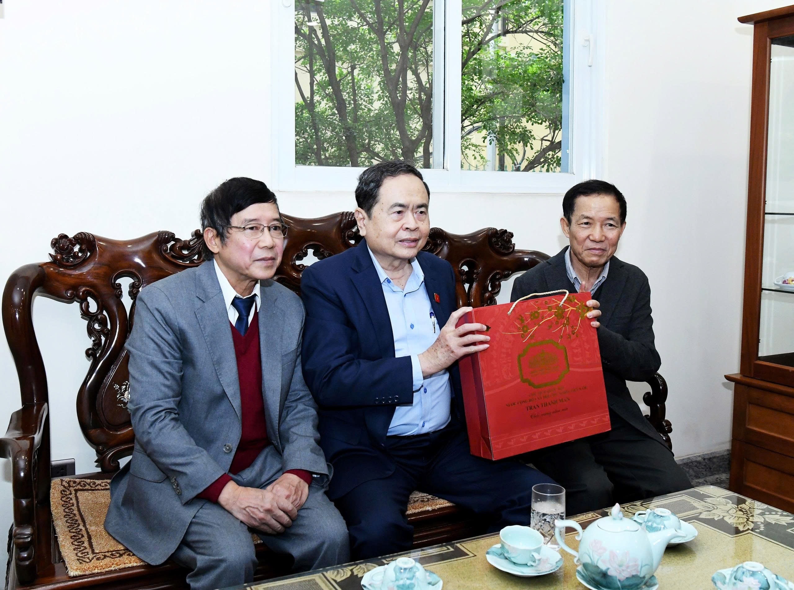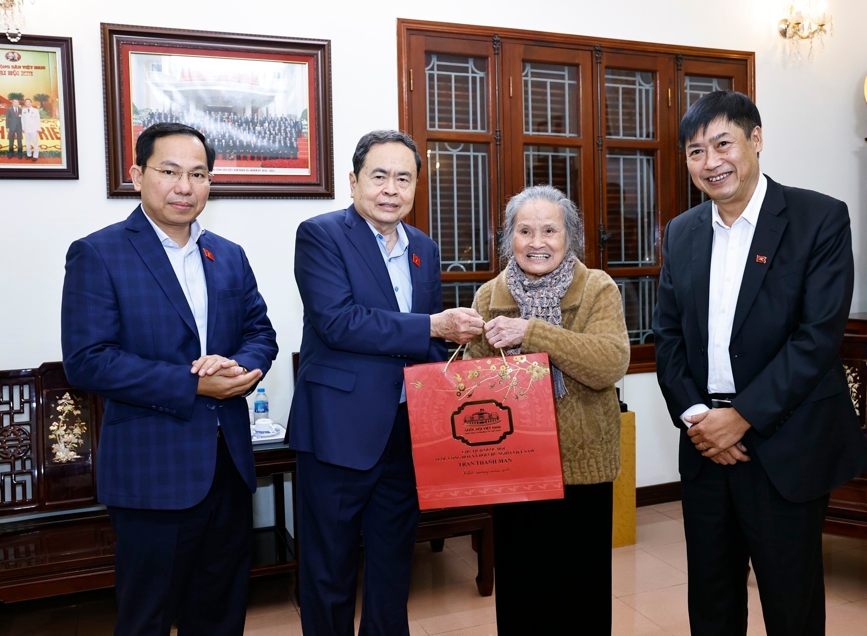 Chủ tịch Quốc hội Trần Thanh Mẫn thăm, chúc Tết gia đình Cố Tổng Bí thư Trường Chinh. Ảnh: Lâm Hiển