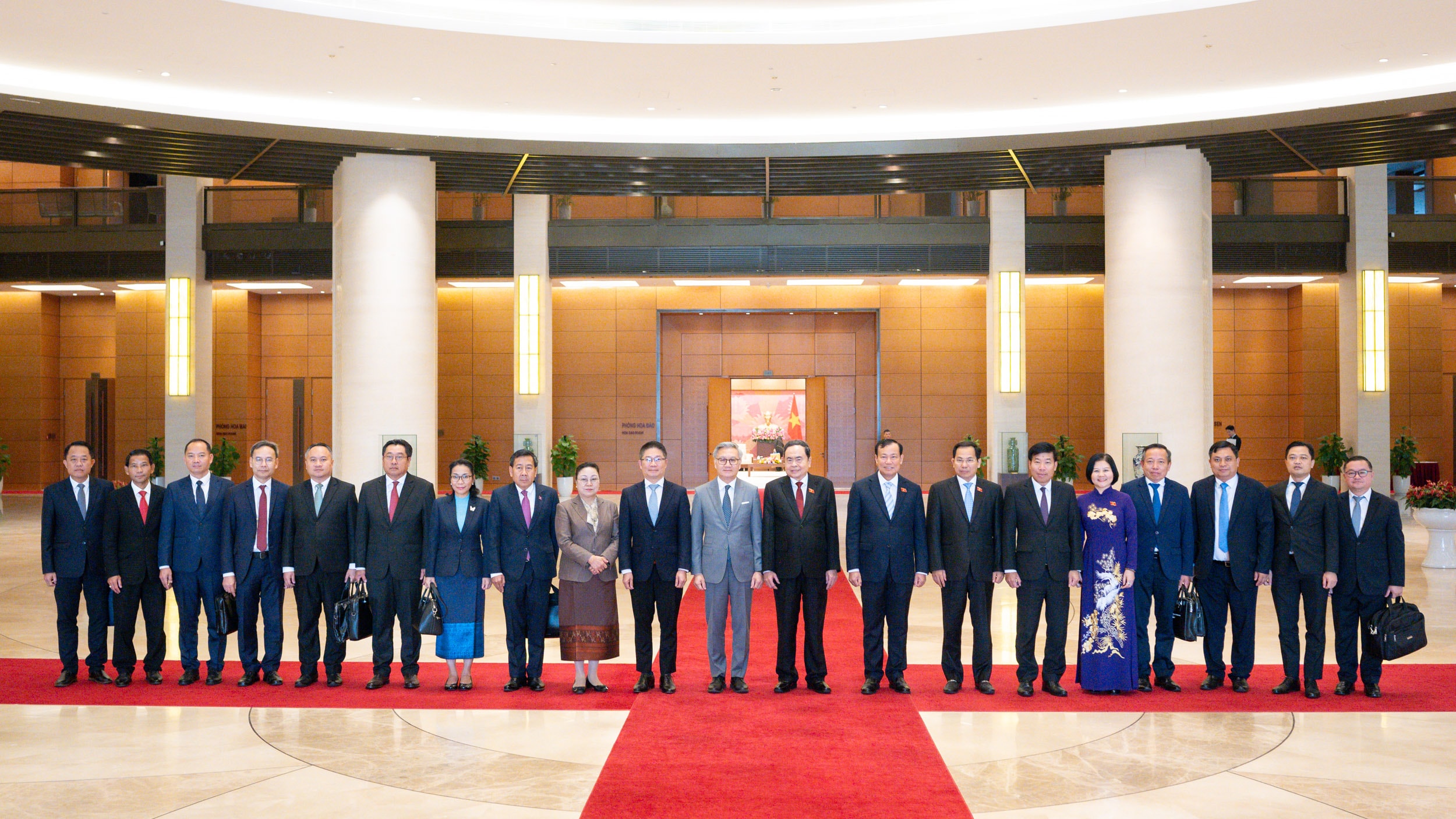 Chủ tịch Quốc hội Trần Thanh Mẫn; Bộ trưởng Bộ Ngoại giao Lào Thongsavanh Phomvihane và các đại biểu chụp ảnh lưu niệm