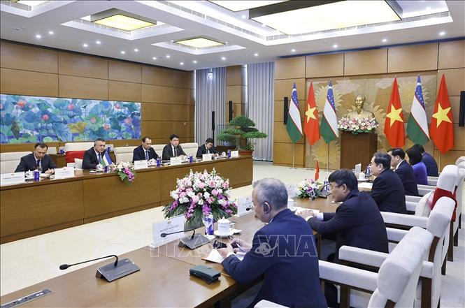Chủ tịch Quốc hội Trần Thanh Mẫn tiếp Chủ tịch Hạ viện Uzbekistan Nuriddin Ismoilov. Ảnh: Doãn Tấn/TTXVN