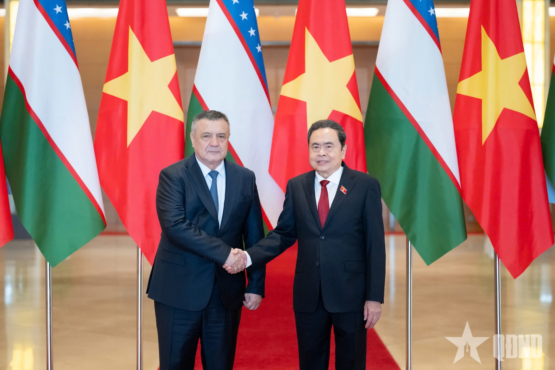 Chủ tịch Quốc hội Trần Thanh Mẫn và Chủ tịch Hạ viện Uzbekistan Nuriddin Ismoilov nhất trí, Quốc hội hai nước thúc đẩy hợp tác chặt chẽ, tăng cường vai trò giám sát triển khai các thỏa thuận đạt được và văn kiện đã ký trong khuôn khổ chuyến thăm chính thức Uzbekistan của Chủ tịch Quốc hội Trần Thanh Mẫn tháng 4-2025, phát huy vai trò cầu nối của các Nhóm nghị sĩ hữu nghị, các ủy ban chuyên môn trong việc tăng cường giao lưu, hiểu biết và gắn kết, cũng như trao đổi thông tin chuyên môn giữa đại biểu Quốc hội hai nước.