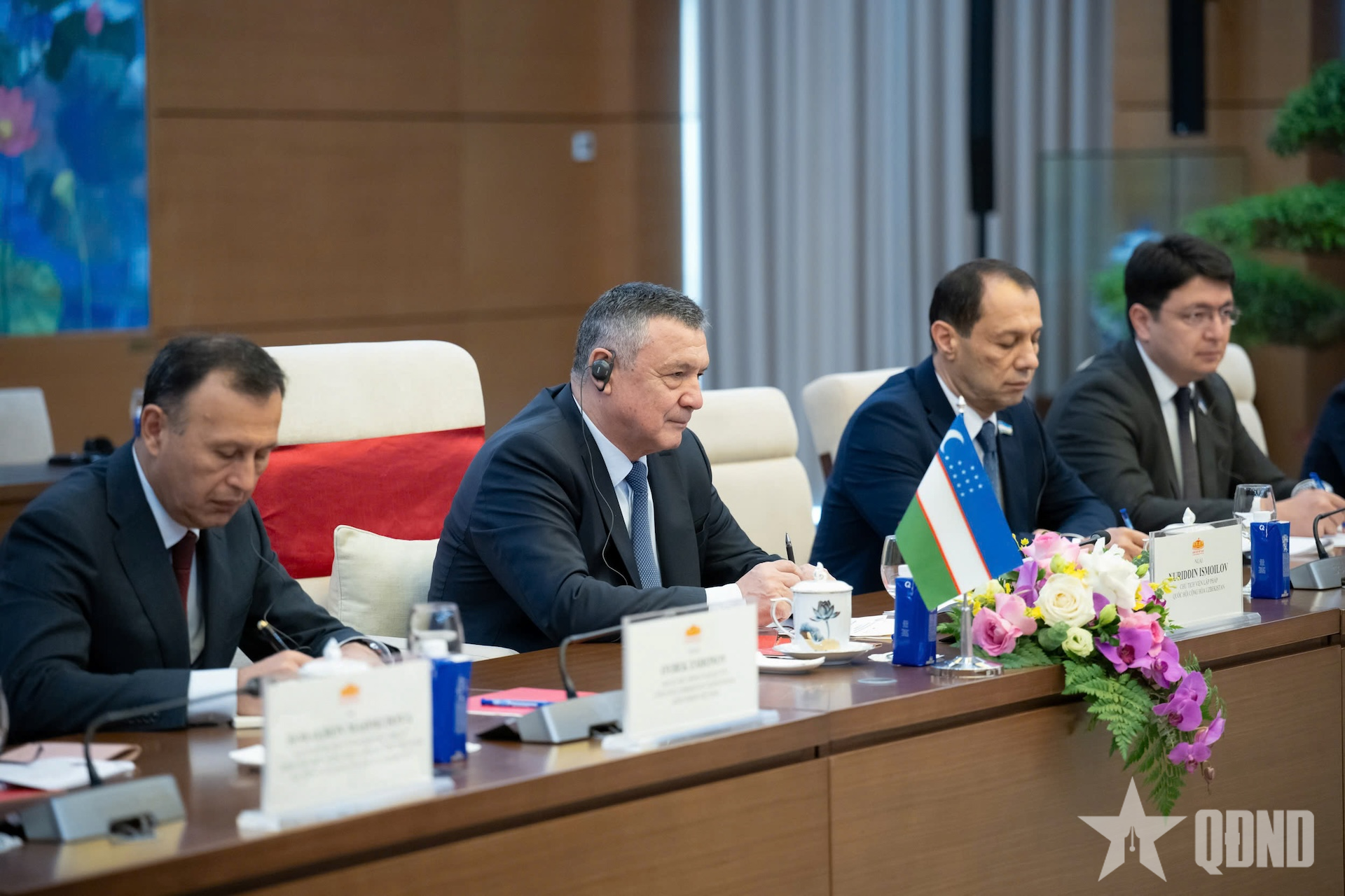 Chủ tịch Hạ viện Uzbekistan Nuriddin Ismoilov và các đại biểu phía Uzbekistan tại cuộc tiếp.