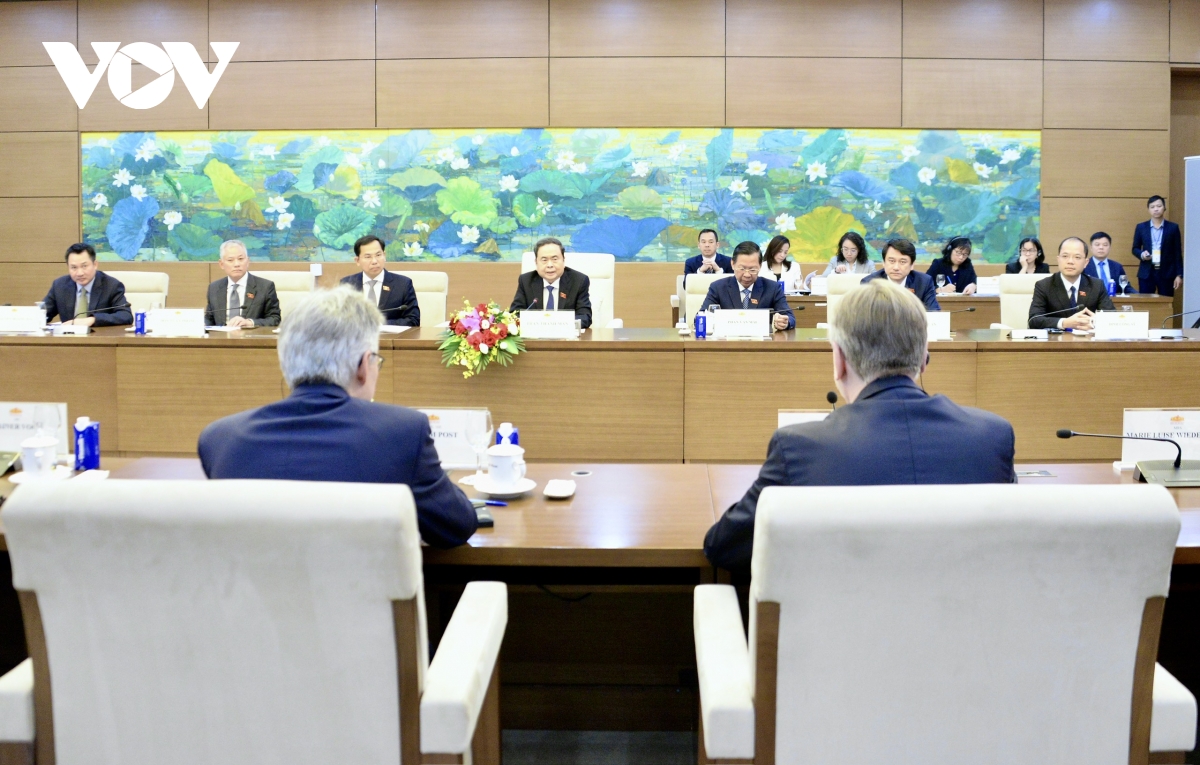 Tại cuộc gặp, Chủ tịch Quốc hội Trần Thanh Mẫn và Phó Chủ tịch Đảng Dân chủ Xã hội Đức Achim Post và Chủ tịch Ủy ban Thương mại quốc tế của Nghị viện Châu Âu Bern Lange đã trao đổi, chia sẻ về việc sắp xếp tổ chức, bộ máy hệ thống chính trị của Việt Nam; việc xây dựng Quốc hội số… cùng một số vấn đề khu vực, quốc tế hai bên cùng quan tâm.