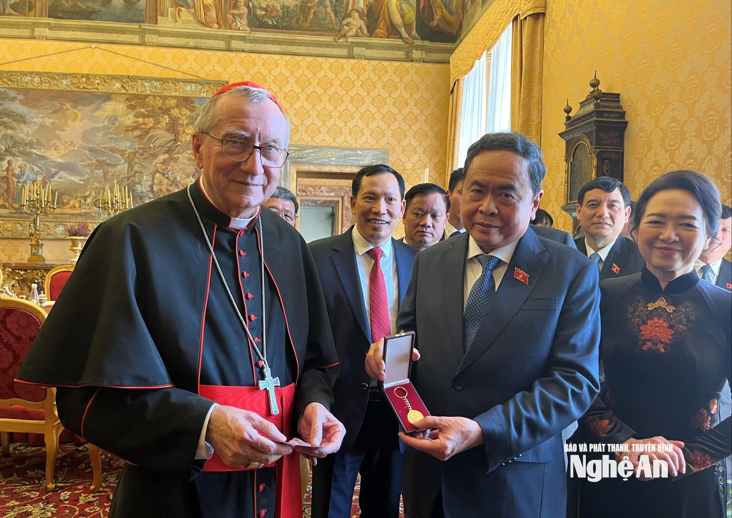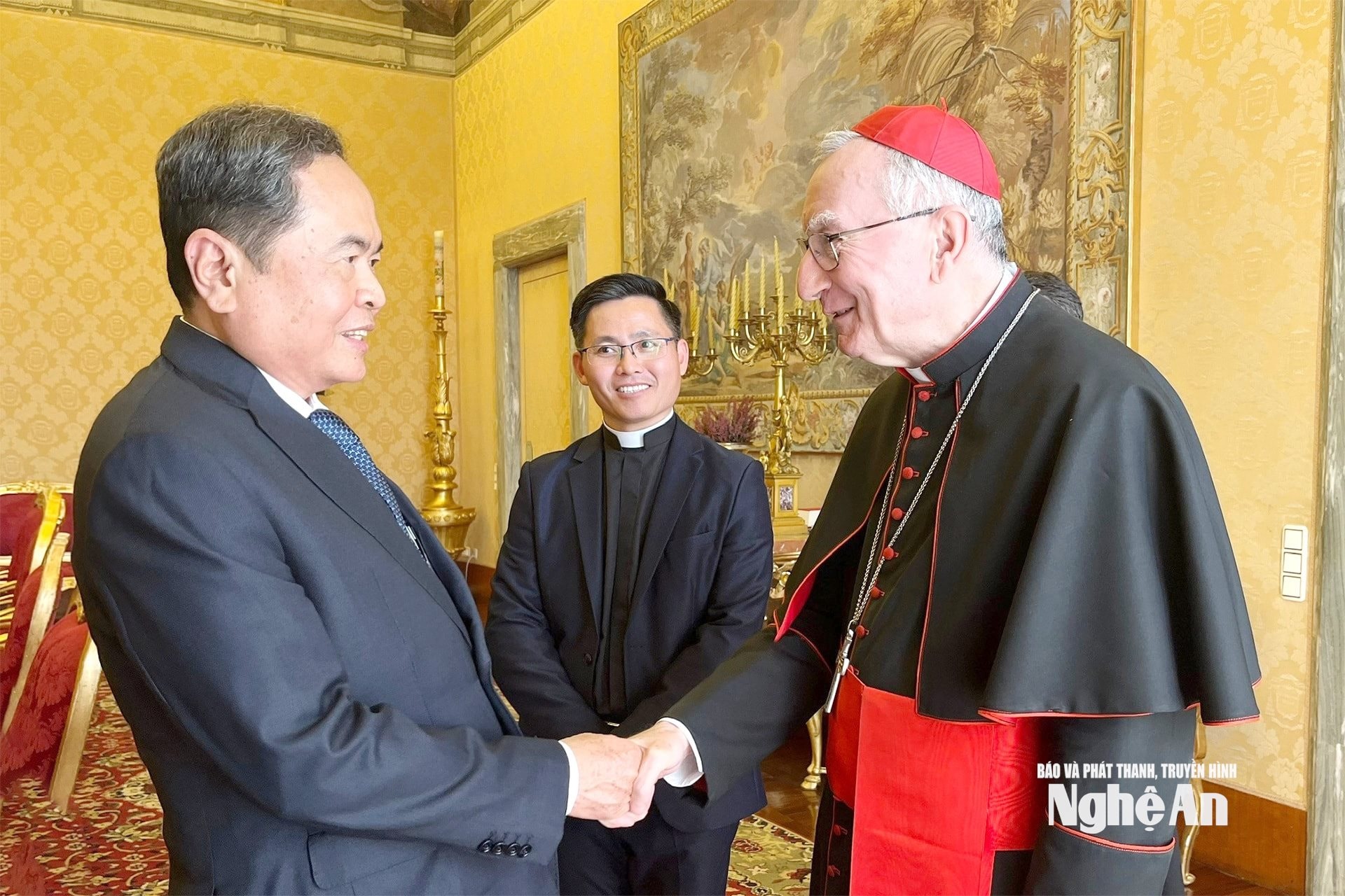 Chủ tịch Quốc hội Trần Thanh Mẫn gặp Thủ tướng Tòa thánh Vatican, Hồng y Pietro Parolin. Ảnh: Đ.D: