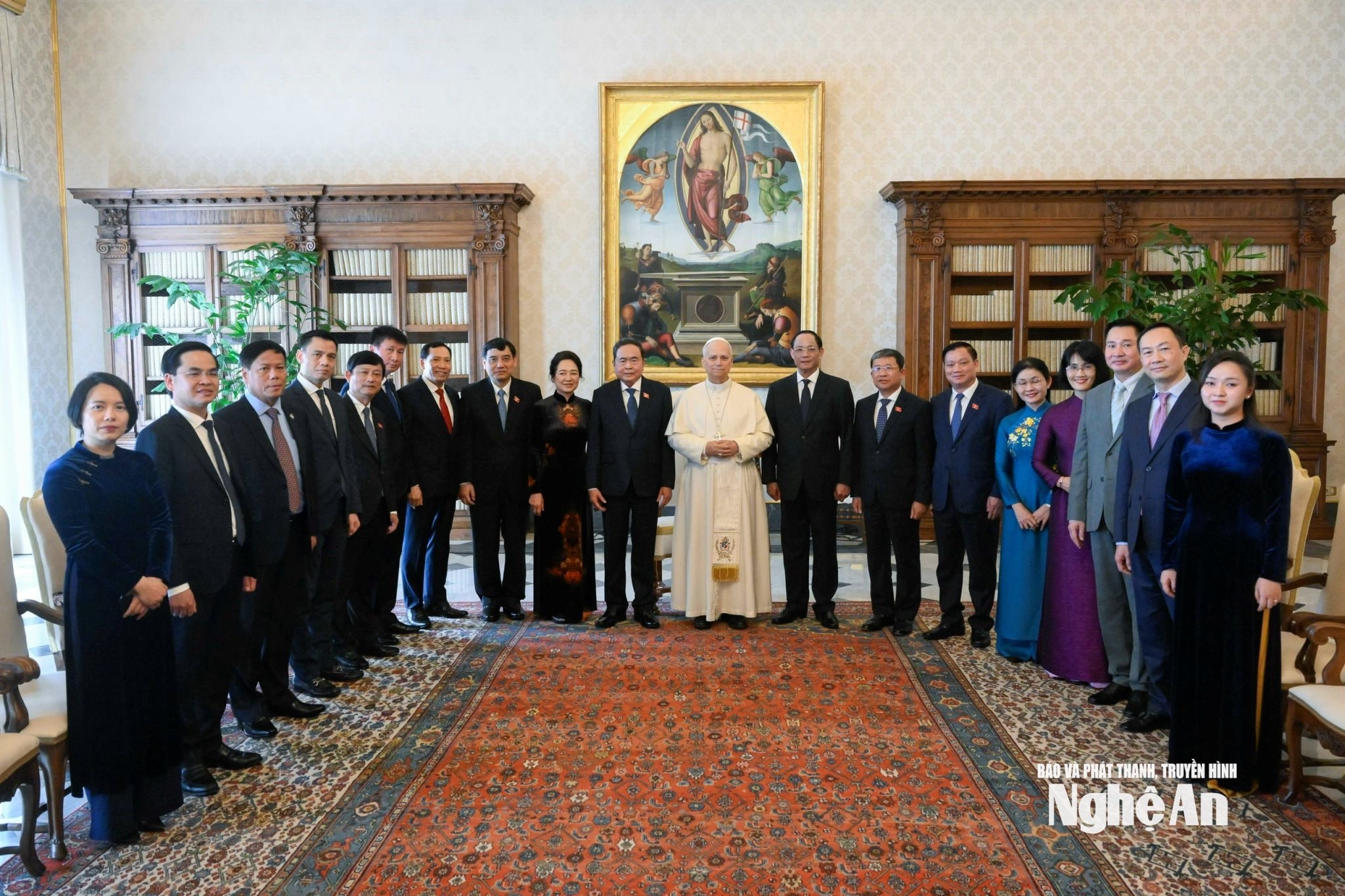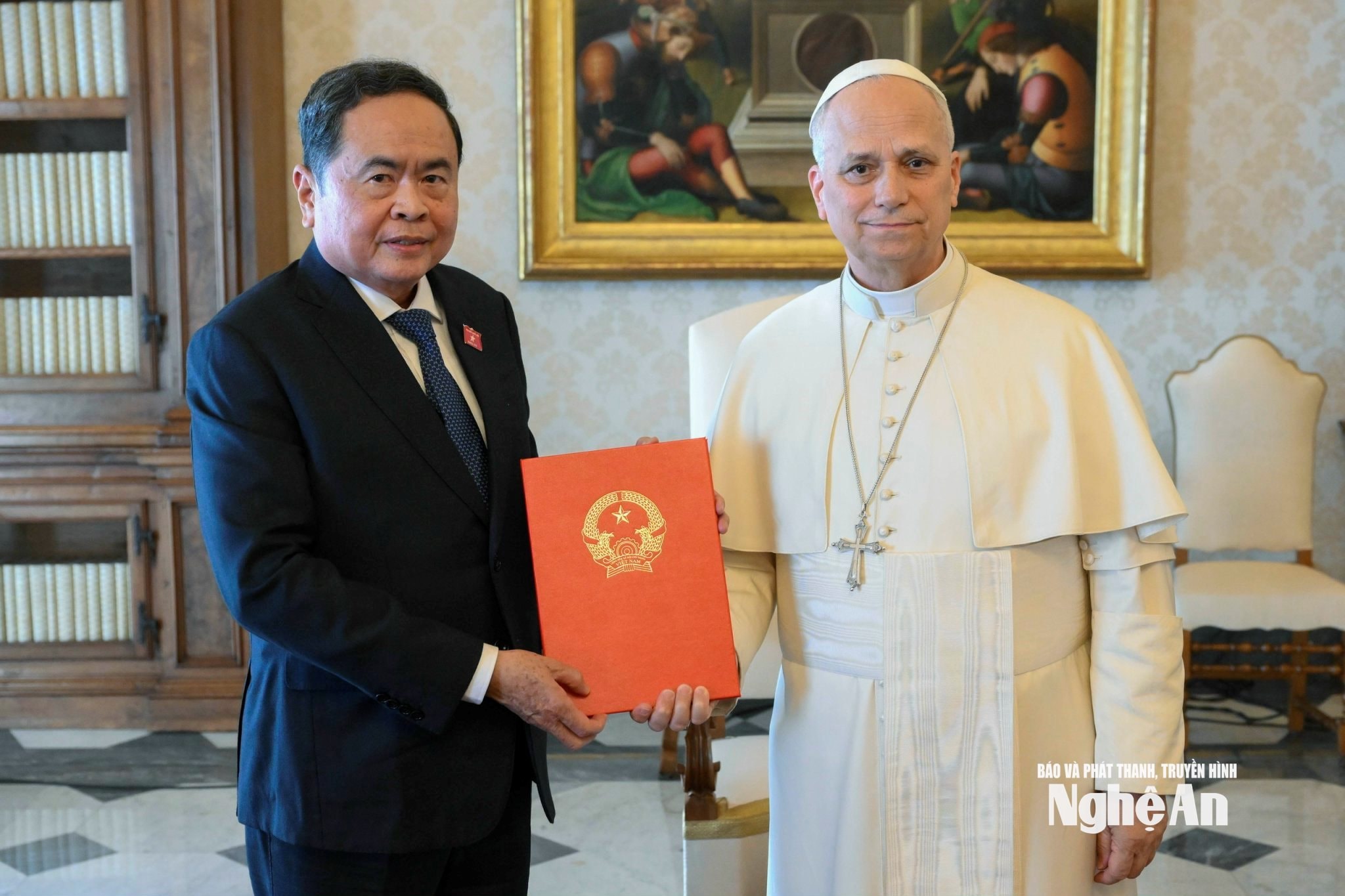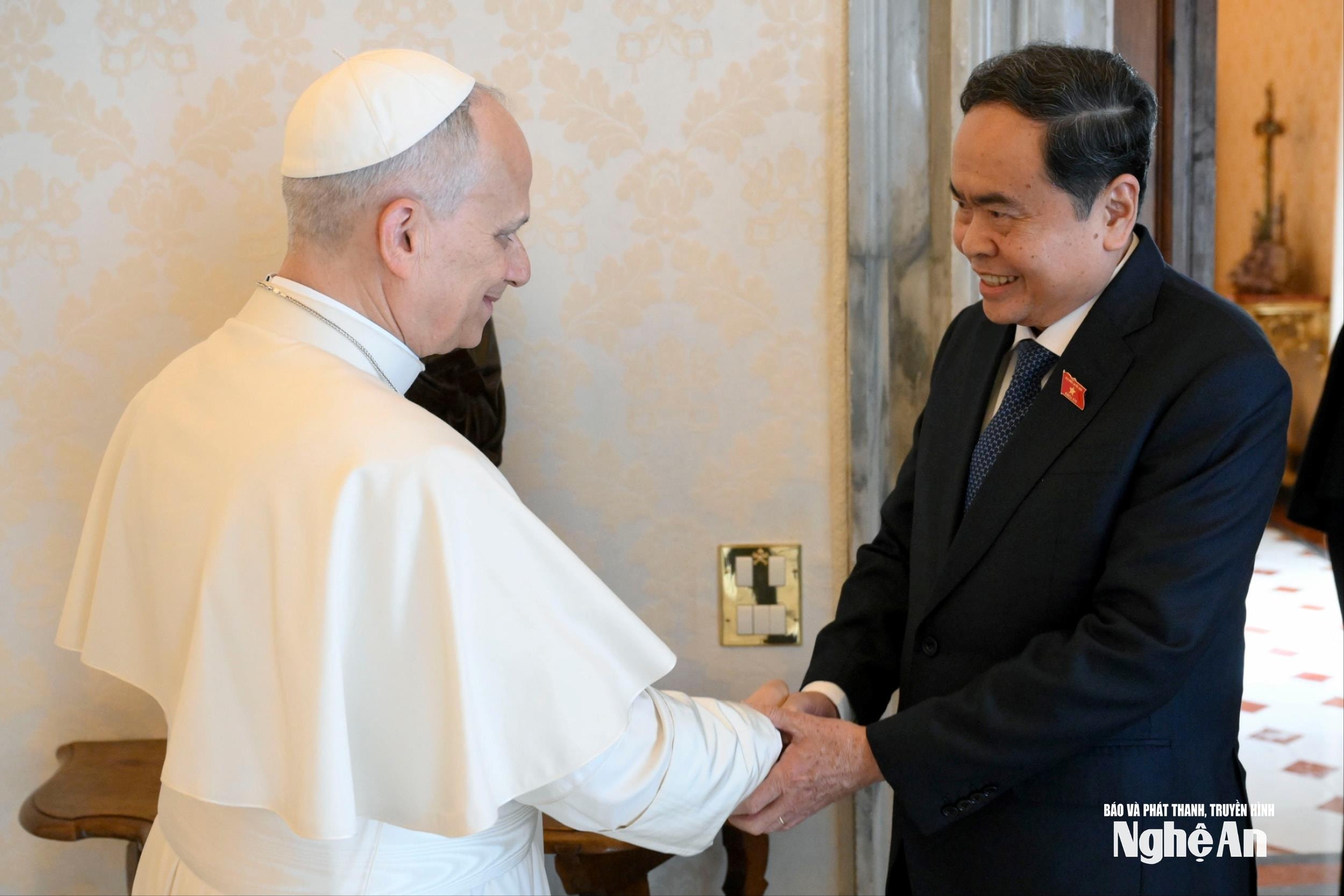 Chủ tịch Quốc hội Trần Thanh Mẫn hội kiến Giáo hoàng Leo XIV. Ảnh: Đ.D