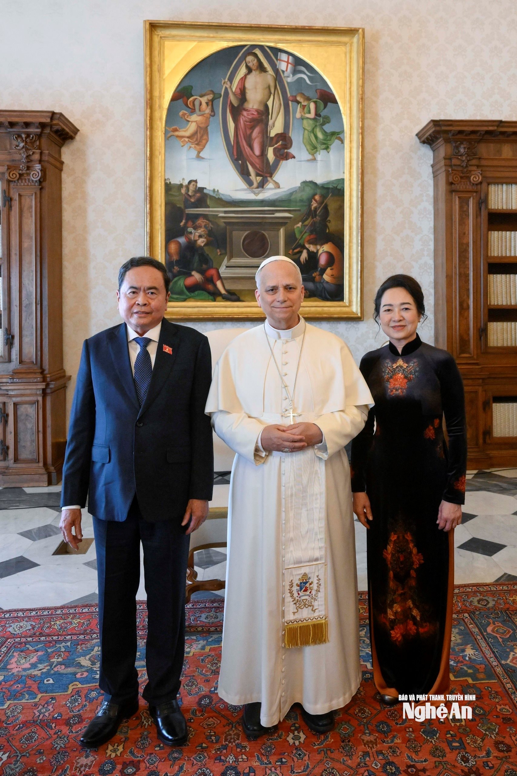 Chủ tịch Quốc hội Trần Thanh Mẫn và Phu nhân hội kiến Giáo hoàng Leo XIV. Ảnh: Đ.D