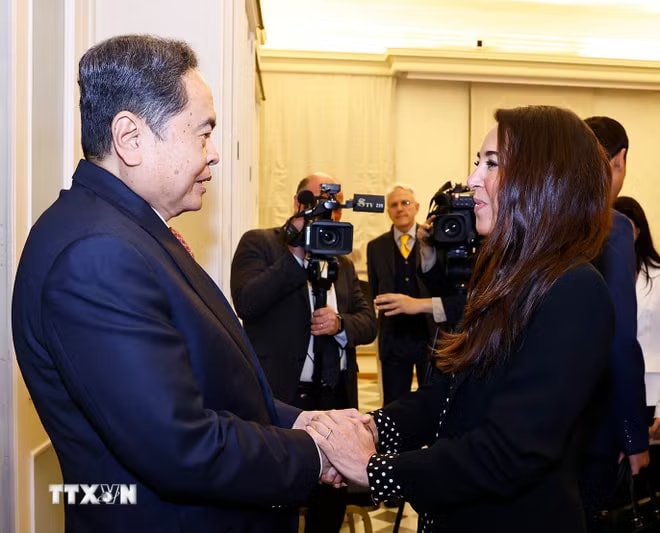 Chủ tịch Quốc hội Trần Thanh Mẫn gặp Phó Chủ tịch Thượng viện Italy Licia Ronzulli. Ảnh: Doãn Tấn/TTXVN