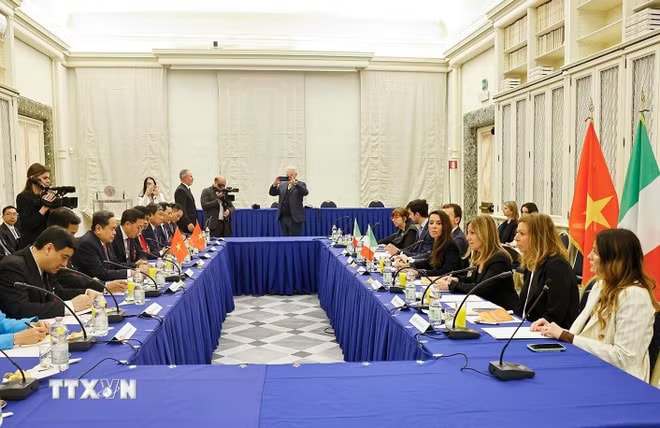 Phó Chủ tịch Thượng viện Italia bày tỏ vui mừng trước sự hiện diện của đông đảo doanh nghiệp Italia tại Việt Nam với nhiều tiềm năng hợp tác về năng lượng, trí tuệ nhân tạo, đổi mới sáng tạo, du lịch...