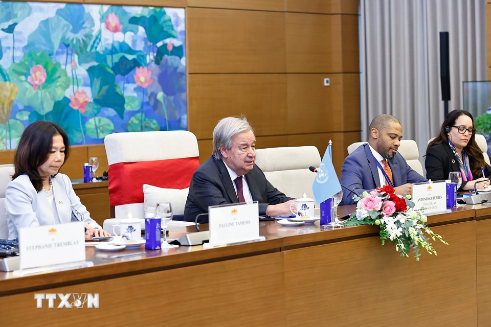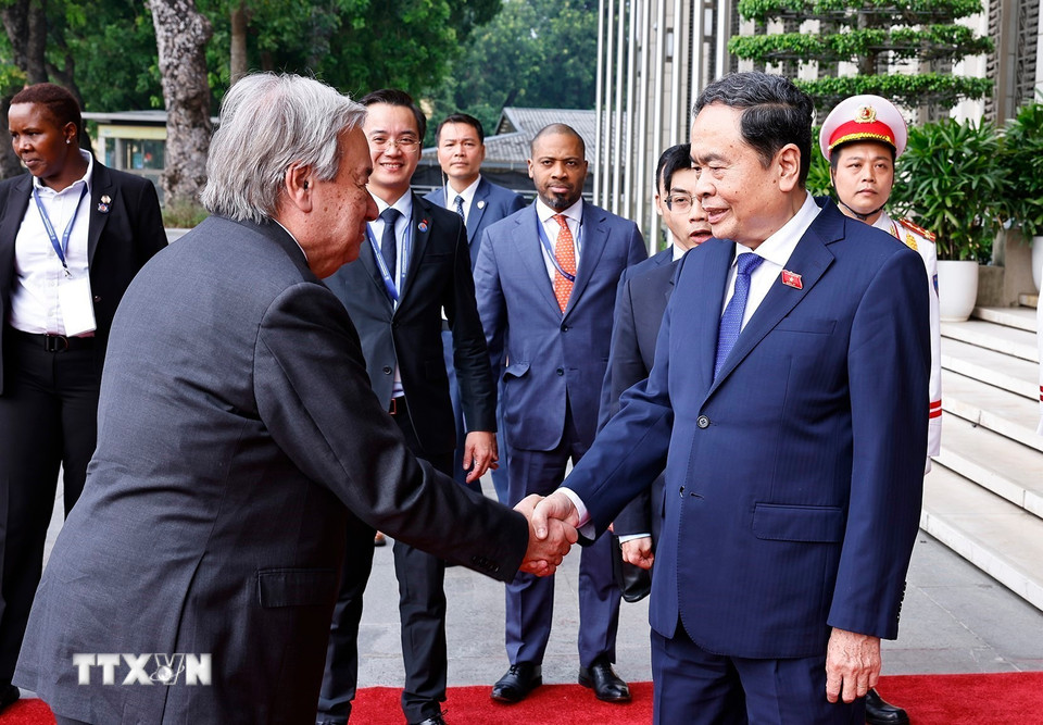 Chủ tịch Quốc hội Trần Thanh Mẫn tiếp Tổng Thư ký Liên hợp quốc António Guterres. (Ảnh: Doãn Tấn/TTXVN)