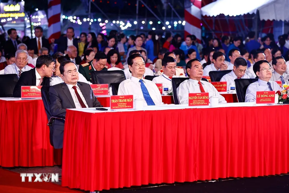 Chủ tịch Quốc hội Trần Thanh Mẫn, nguyên Thủ tướng Chính phủ Nguyễn Tấn Dũng dự Lễ kỷ niệm 50 năm Ngày giải phóng miền Nam, thống nhất đất nước (30-4-1975 - 30-4-2025) tại Cần Thơ. Ảnh: TTXVN