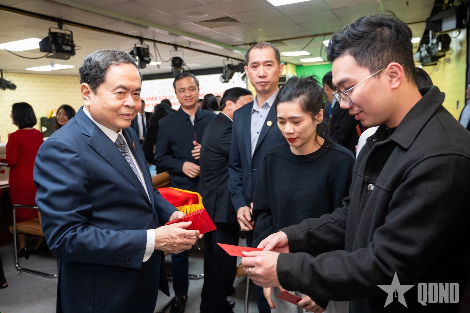 Chủ tịch Quốc hội Trần Thanh Mẫn mừng tuổi cán bộ, công chức, viên chức, người lao động Báo Đại biểu Nhân dân. Ảnh: PHẠM THẮNG