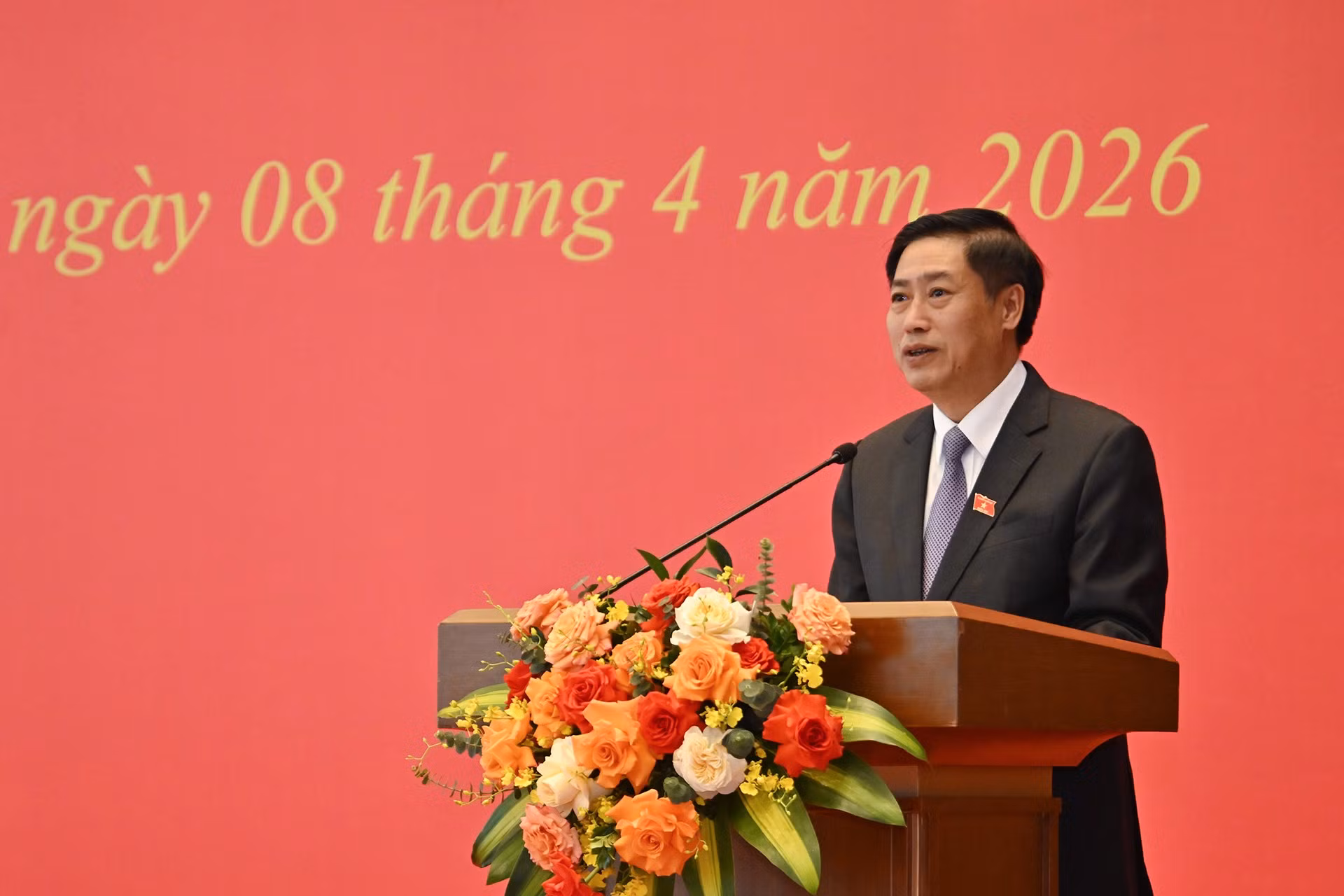 Chủ nhiệm Ủy ban Công tác Đại biểu của Quốc hội Nguyễn Hữu Đông công bố các Nghị quyết. tại buổi lễ. (Ảnh: THỦY NGUYÊN)