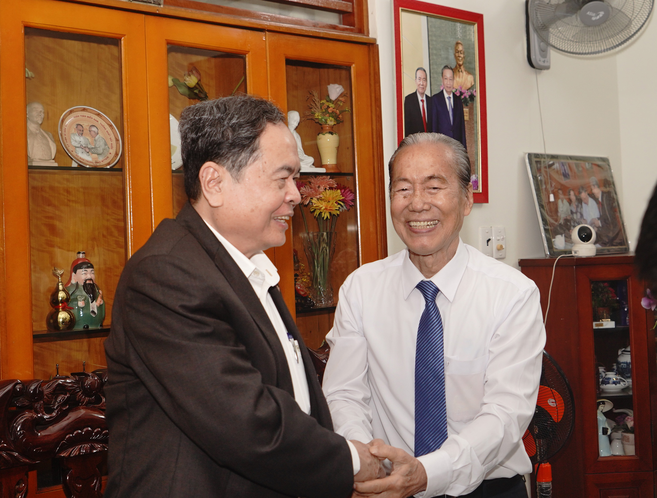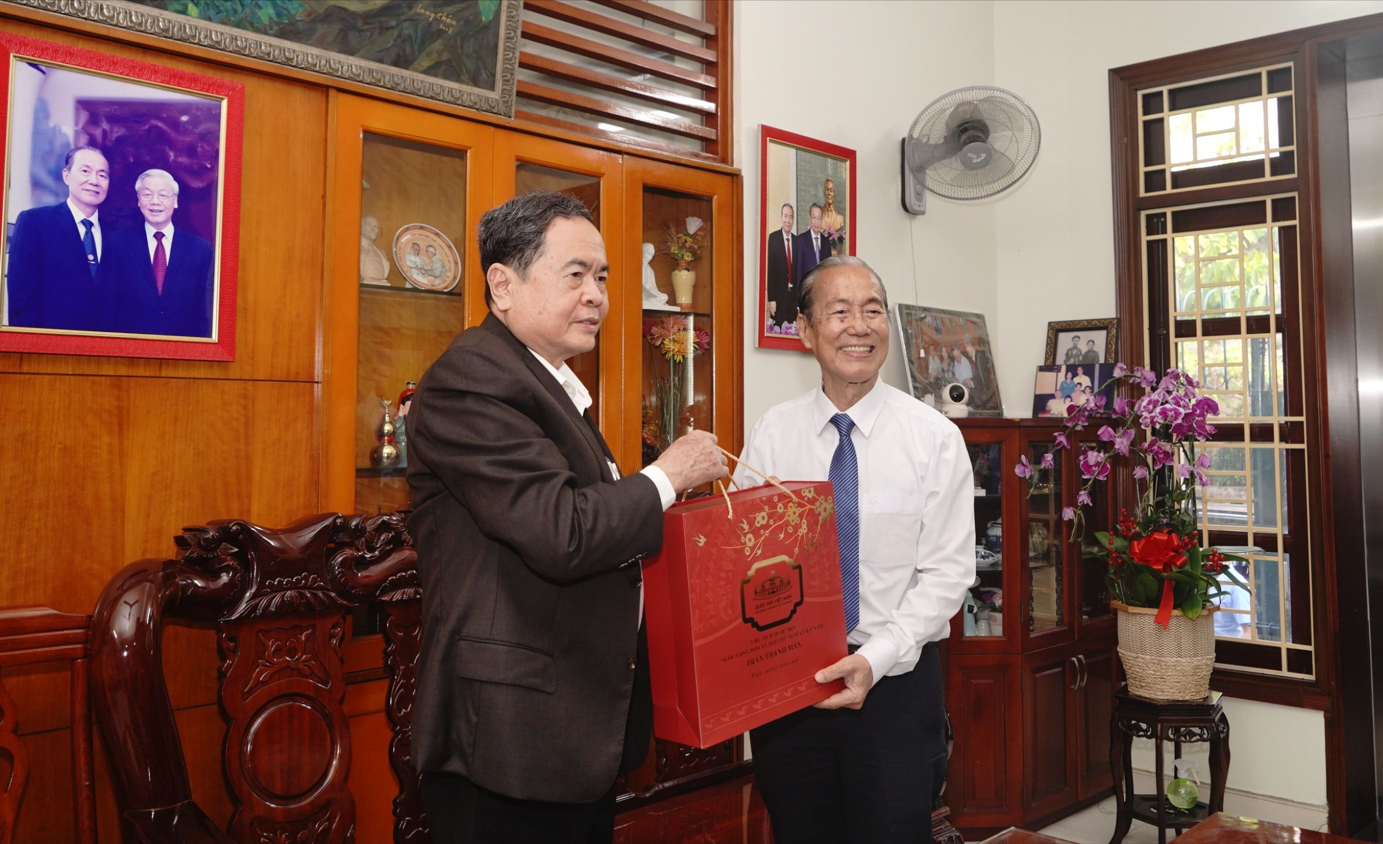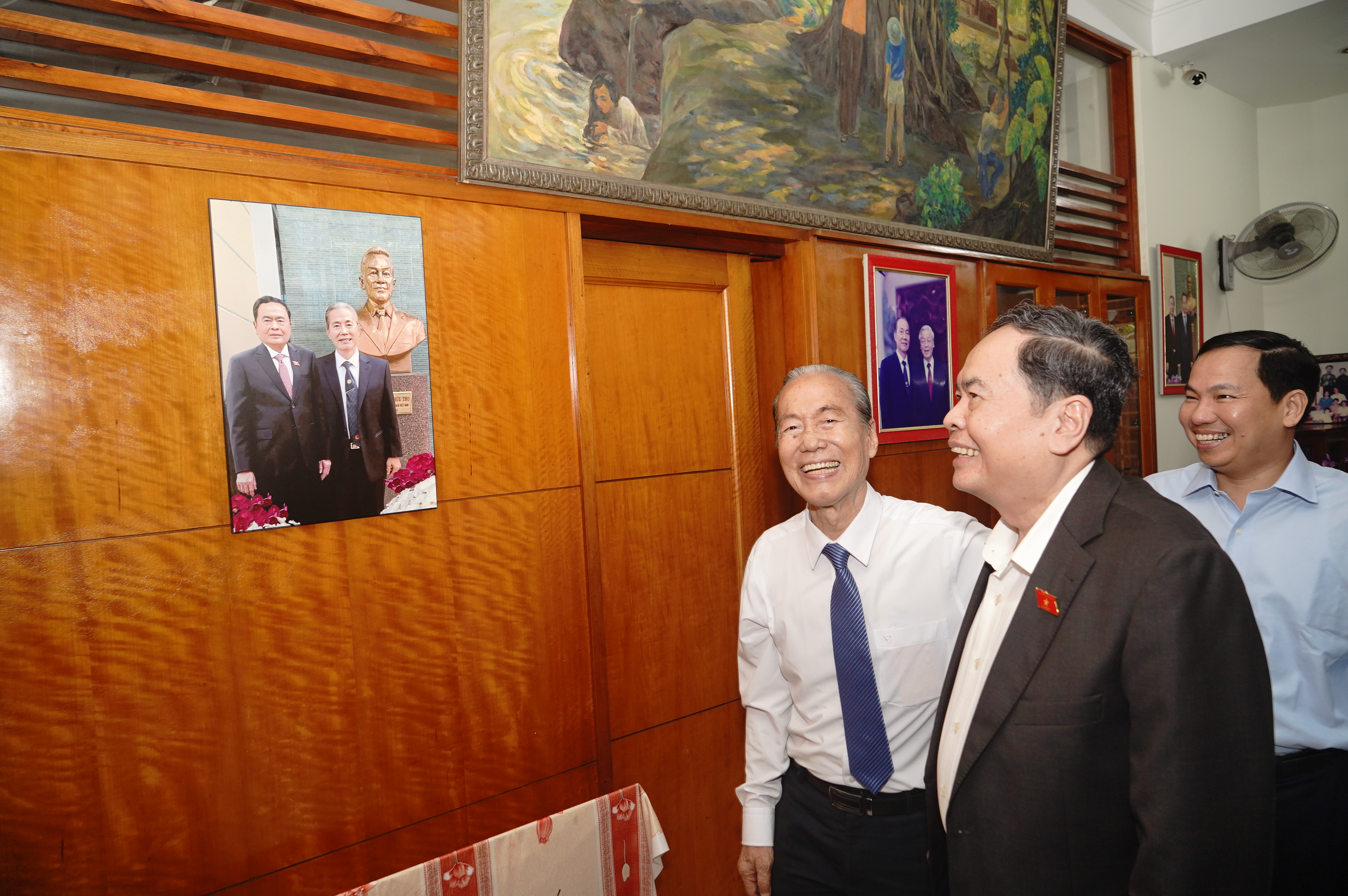 Chủ tịch Quốc hội Trần Thanh Mẫn chúc Tết gia đình cố Chủ tịch Quốc hội Nguyễn Hữu Thọ. Ảnh: THẾ ANH