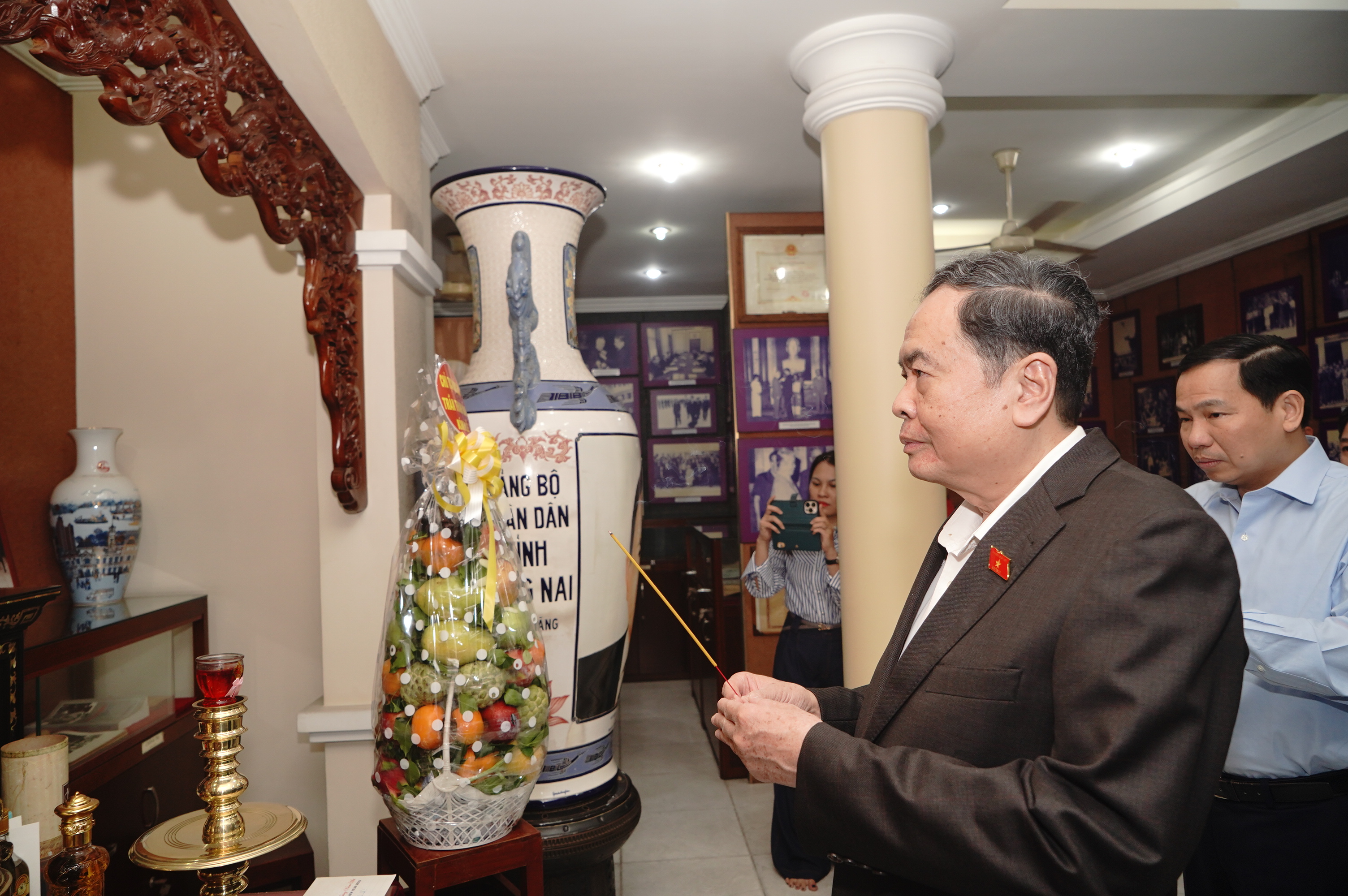 Chủ tịch Quốc hội Trần Thanh Mẫn cùng Đoàn công tác đến dâng hương cố Chủ tịch Quốc hội Nguyễn Hữu Thọ. Ảnh: THẾ ANH