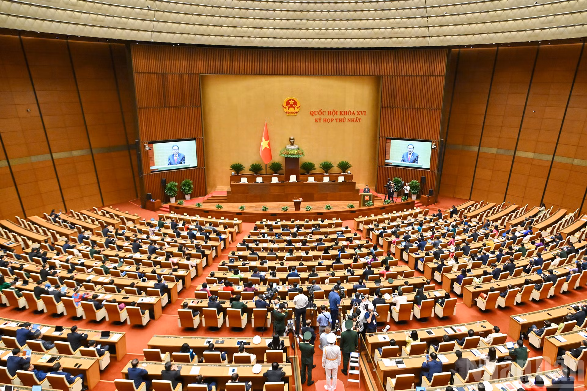 Quang cảnh Lễ tuyên thệ nhậm chức Chủ tịch Quốc hội nước Cộng hòa xã hội chủ nghĩa Việt Nam khóa XVI của Chủ tịch Quốc hội Trần Thanh Mẫn.
