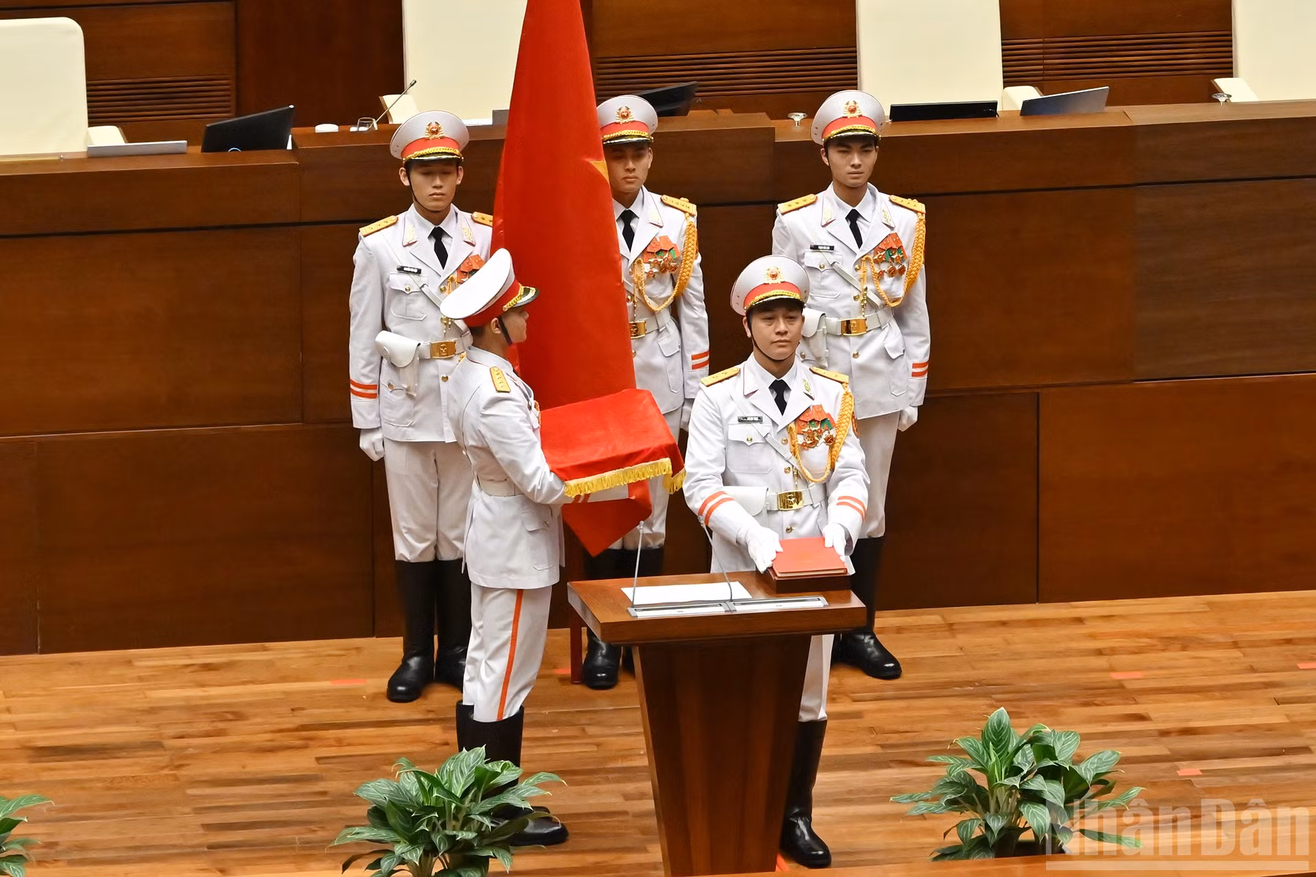 Chủ tịch Quốc hội Trần Thanh Mẫn thực hiện nghi thức chào Quốc kỳ nước Cộng hòa xã hội chủ nghĩa Việt Nam tại Lễ tuyên thệ nhậm chức.