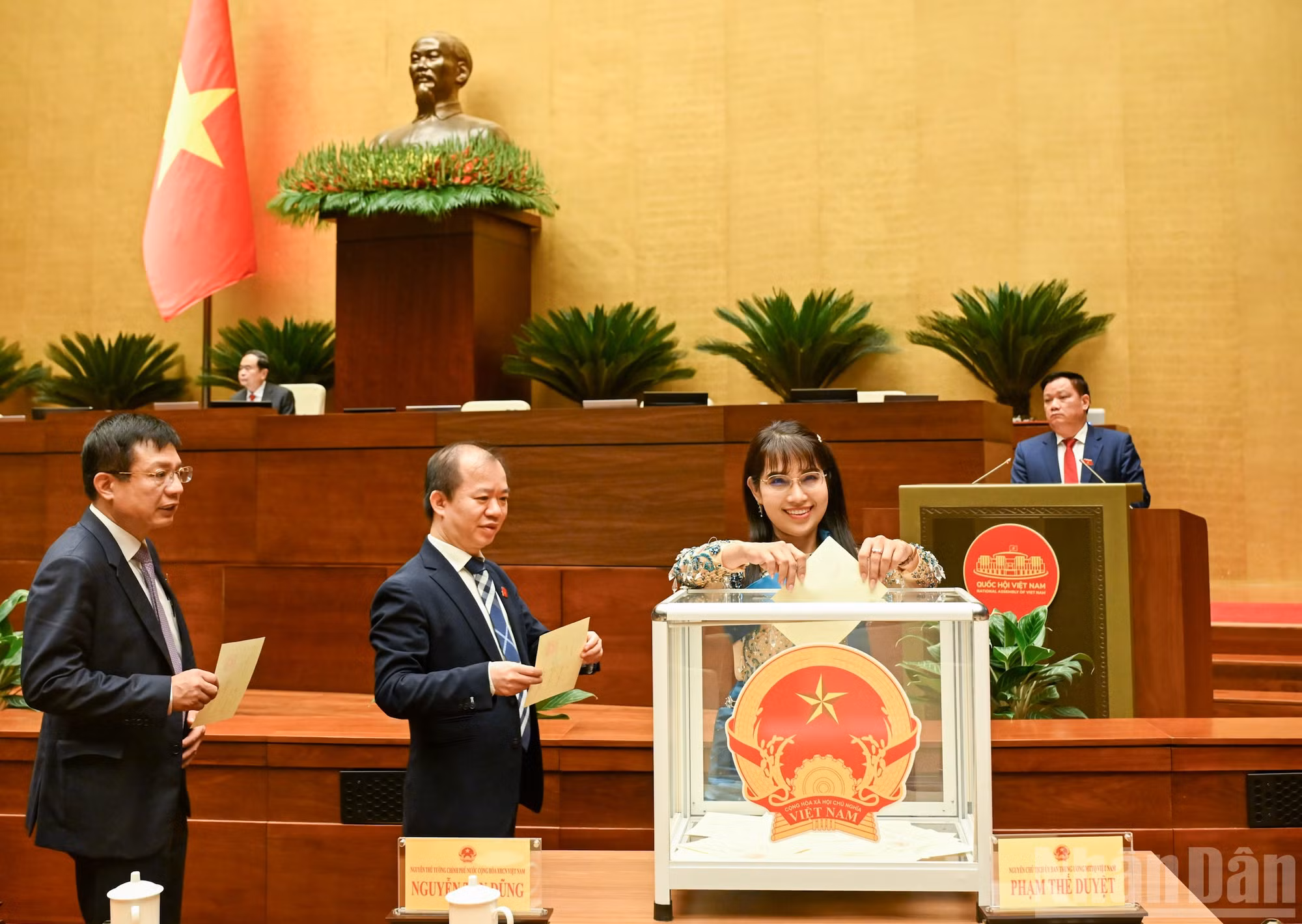 Tổng Bí thư Tô Lâm và Chủ tịch Quốc hội khóa XV Trần Thanh Mẫn bỏ phiếu bầu Chủ tịch Quốc hội khóa XVI.