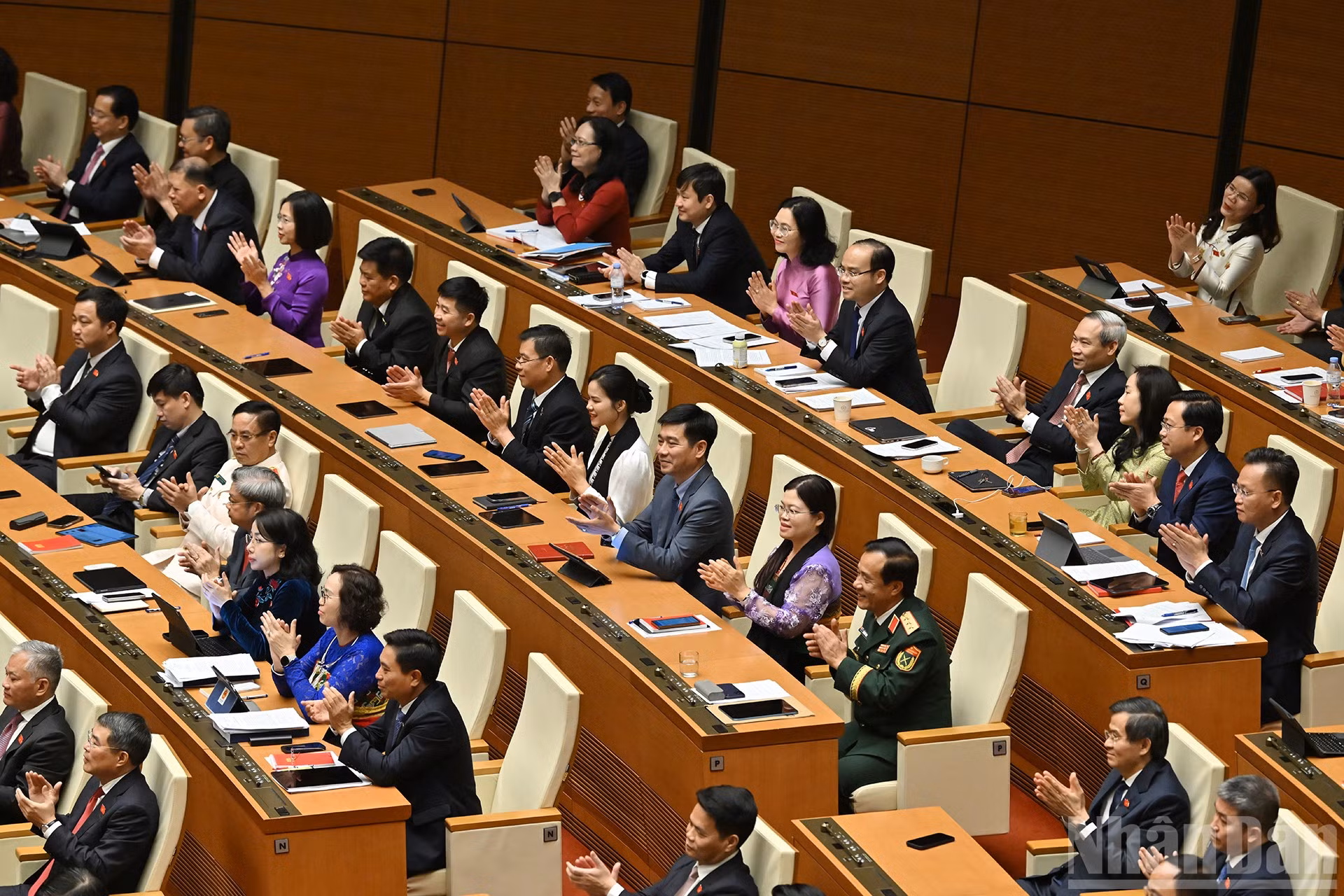 Các đại biểu Quốc hội chứng kiến Lễ tuyên thệ nhậm chức của Chủ tịch Quốc hội Trần Thanh Mẫn.