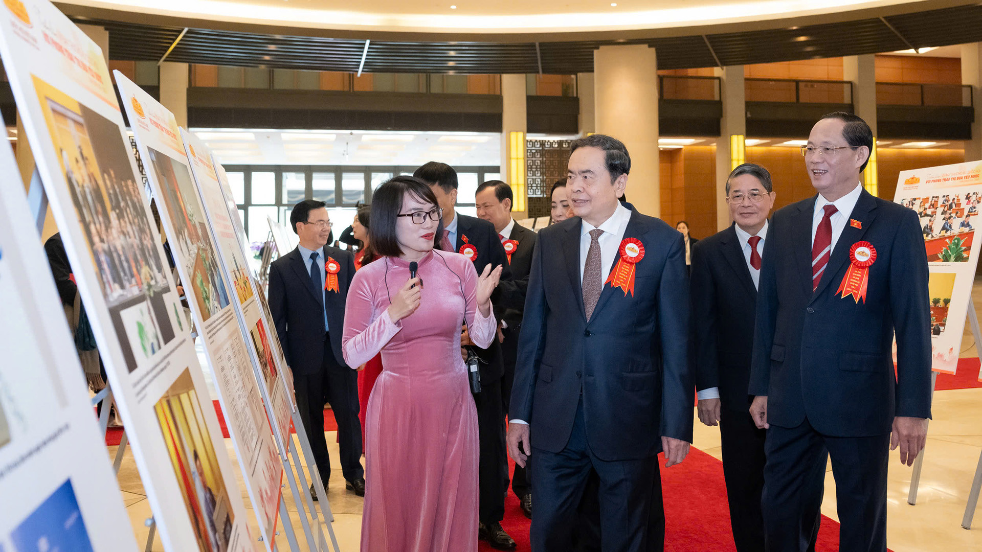 Chủ tịch Quốc hội Trần Thanh Mẫn và các đại biểu tham quan triển lãm ảnh “Ủy ban Thường vụ Quốc hội với phong trào thi đua yêu nước giai đoạn 2020-2025”. Ảnh: Quốc hội