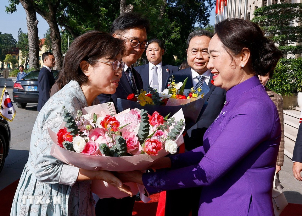 Chủ tịch Quốc hội Trần Thanh Mẫn và Phu nhân chủ trì lễ đón Chủ tịch Quốc hội Đại Hàn Dân Quốc Woo Won Shik và Phu nhân thăm chính thức Việt Nam. (Ảnh: Doãn Tấn/TTXVN)