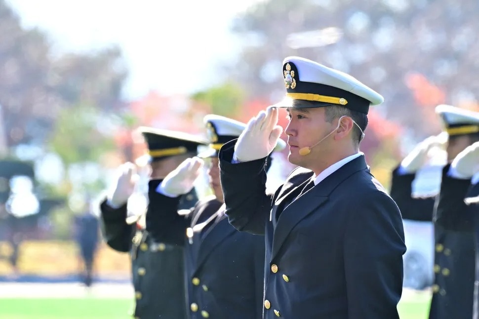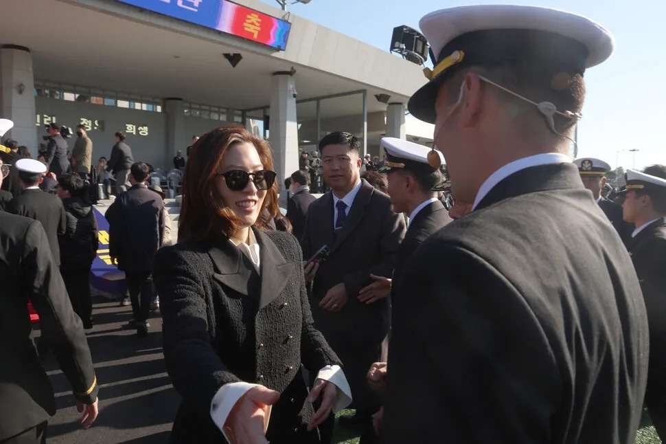 Bà Im Se-ryeong động viên con trai Lee Ji-ho trong lễ tốt nghiệp và trao quân hàm cho khóa 139 sĩ quan hải quân - thủy quân lục chiến tại Học viện Hải quân Hàn Quốc chiều 28/11.