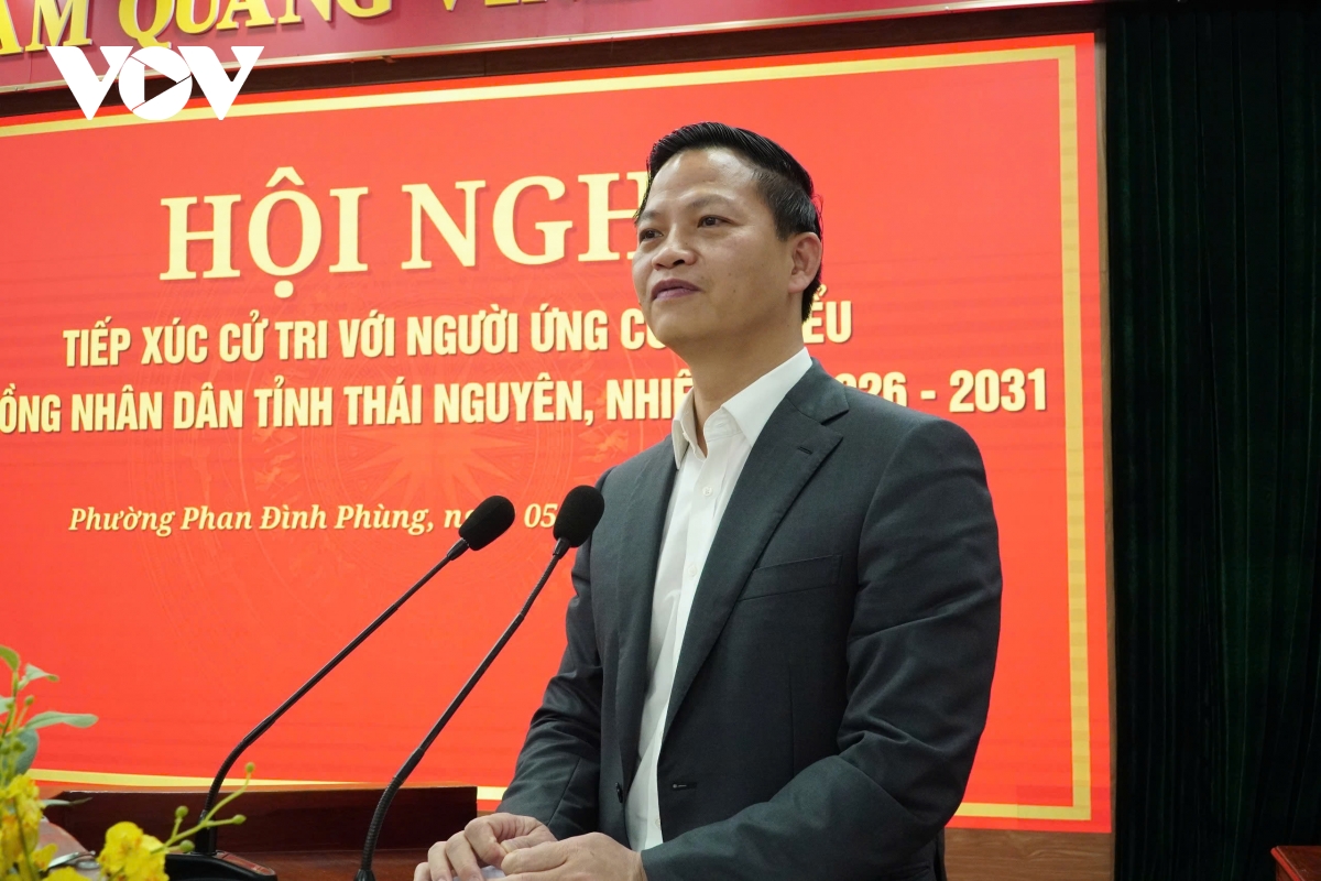 Tại hội nghị tiếp xúc cử tri với người ứng cử đại biểu HĐND tỉnh Thái Nguyên nhiệm kỳ 2026-2031, ông Vương Quốc Tuấn - Ủy viên Trung ương Đảng, Chủ tịch UBND tỉnh Thái Nguyên đã trình bày chương trình hành động với nhiều mục tiêu phát triển kinh tế - xã hội quan trọng. Nhiều cử tri bày tỏ sự đồng tình, tin tưởng, đồng thời kiến nghị tỉnh quan tâm giải quyết các vấn đề dân sinh như chống ngập đô thị, hạ tầng giao thông, cấp giấy chứng nhận quyền sử dụng đất và quy hoạch phát triển đô thị.