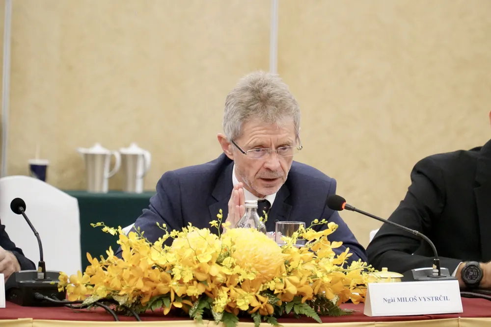 Ông Milos Vystrcil, Chủ tịch Thượng viện Quốc hội Cộng hòa Séc, trao đổi tại buổi gặp. Ảnh: BẢO PHƯƠNG