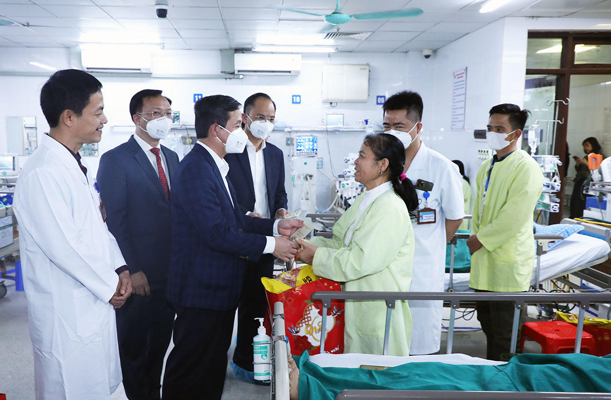 Thăm một số bệnh nhân nặng đang điều trị tại Khoa Hồi sức tích cực, Chủ tịch UBND tỉnh Bắc Ninh ân cần hỏi thăm sức khỏe, chia sẻ với người bệnh và gia đình phải đón Tết trong bệnh viện. Đồng thời trao quà của tỉnh và chúc các bệnh nhân sớm hồi phục, ổn định sức khỏe, sớm được ra viện, trở về với gia đình.