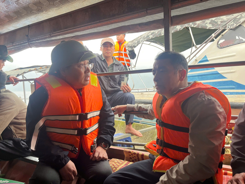 Chủ tịch UBND tỉnh Lào Cai Nguyễn Tuấn Anh trực tiếp chỉ đạo công tác khắc phục, tìm kiếm cứu hộ tại hiện trường vụ tai nạn trên hồ Thác Bà. Ảnh: Hương Giang