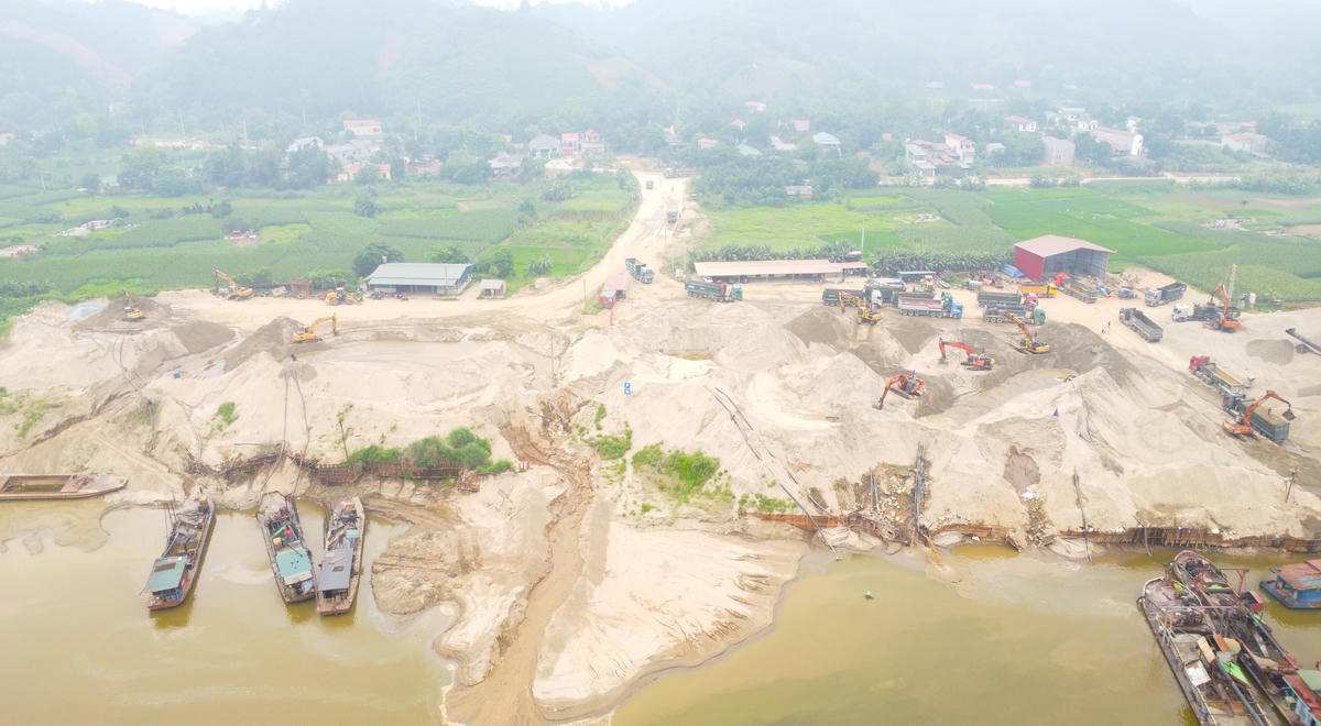 Một bến bãi tập kết, trung chuyển cát ven sông Hồng gần khu vực cầu Văn Phú, tỉnh Lào Cai. Ảnh: Đ.S.